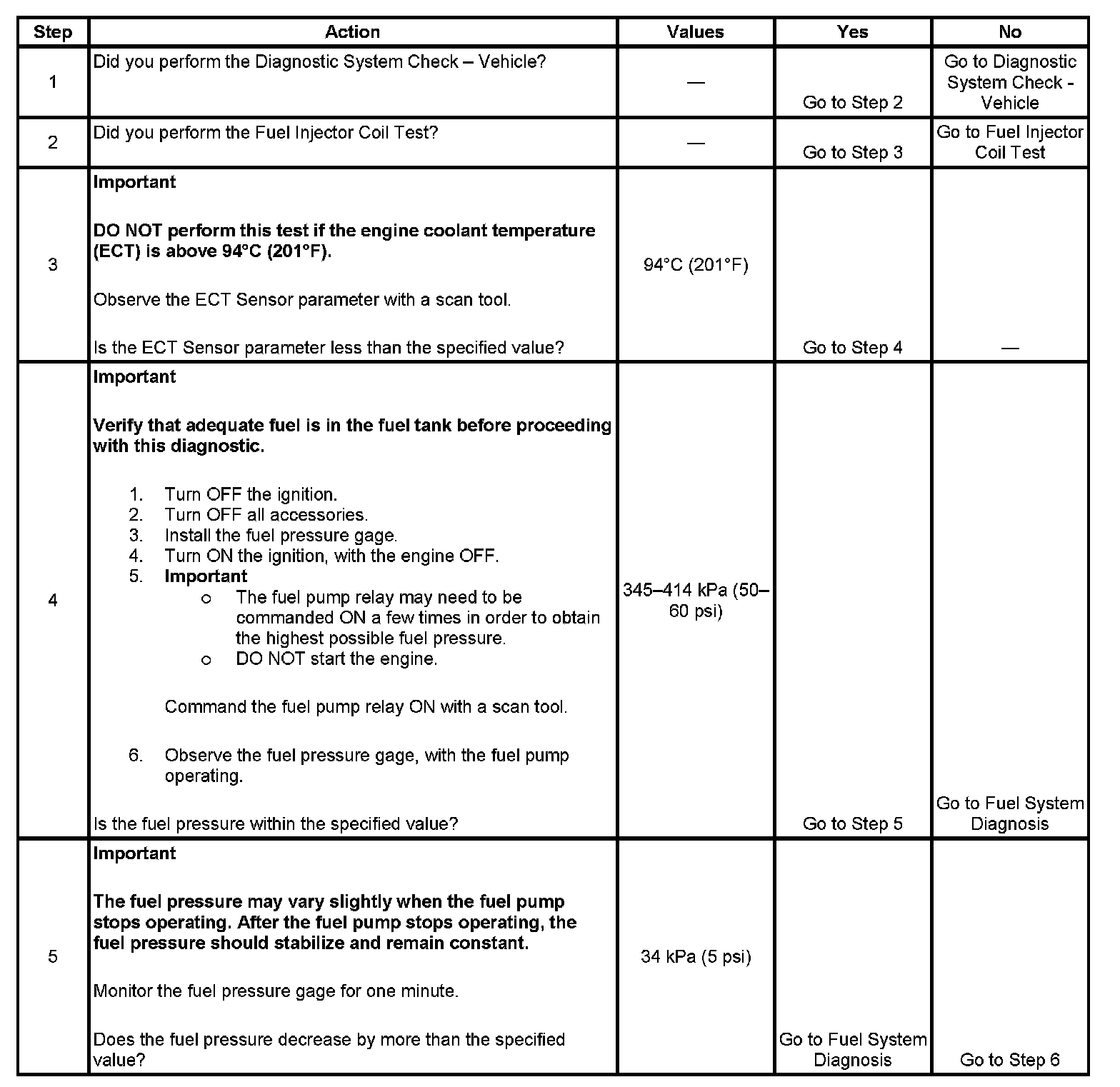 3. The engine coolant temperature (ECT) must be below the operating temperature in order to avoid irregular fuel pressure readings due to hot soak fuel boiling.