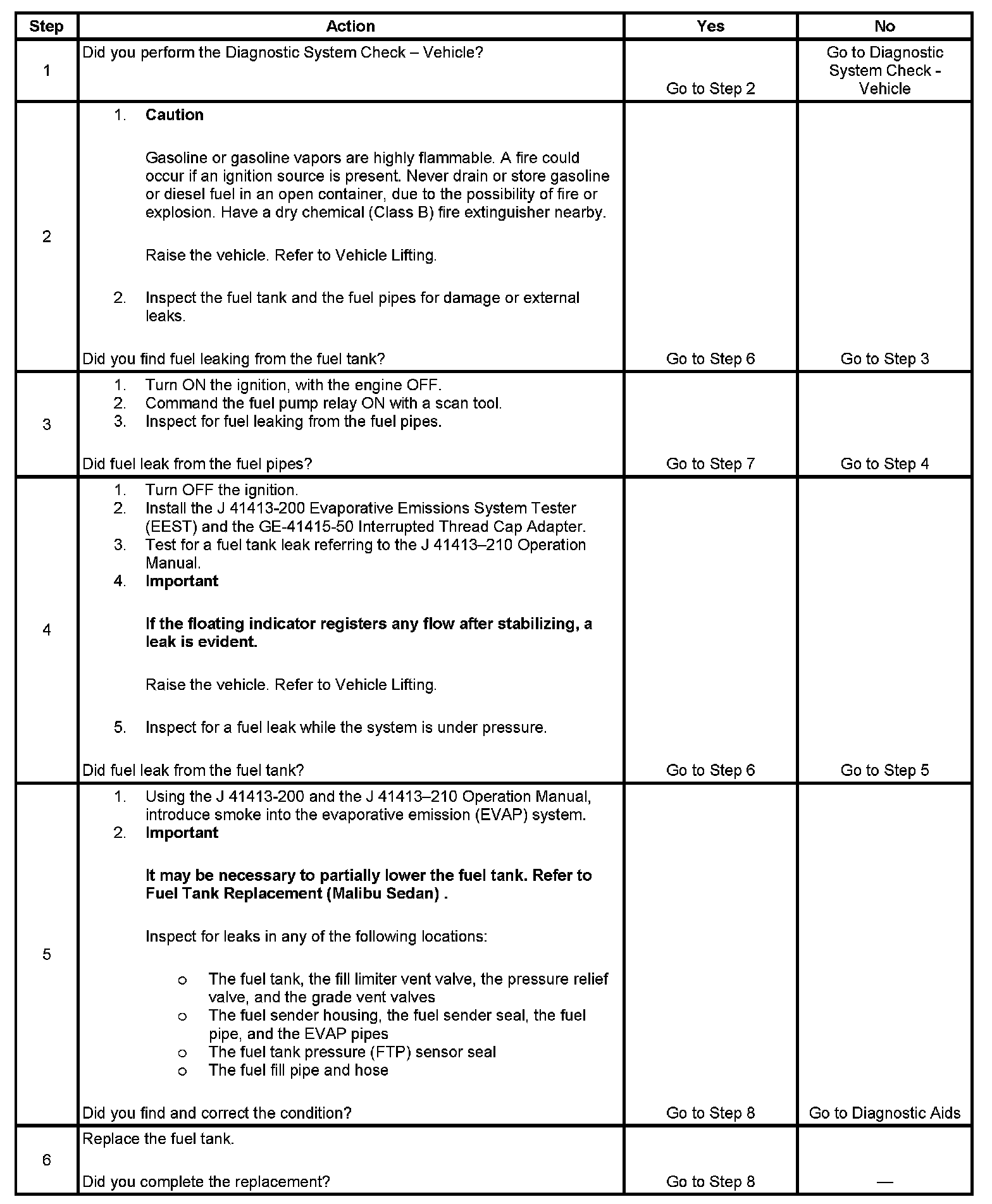 4. This step tests for fuel leaks below the fuel tank fuel level.