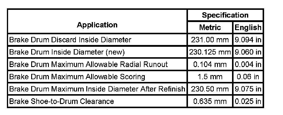 Drum Brake Component Specifications