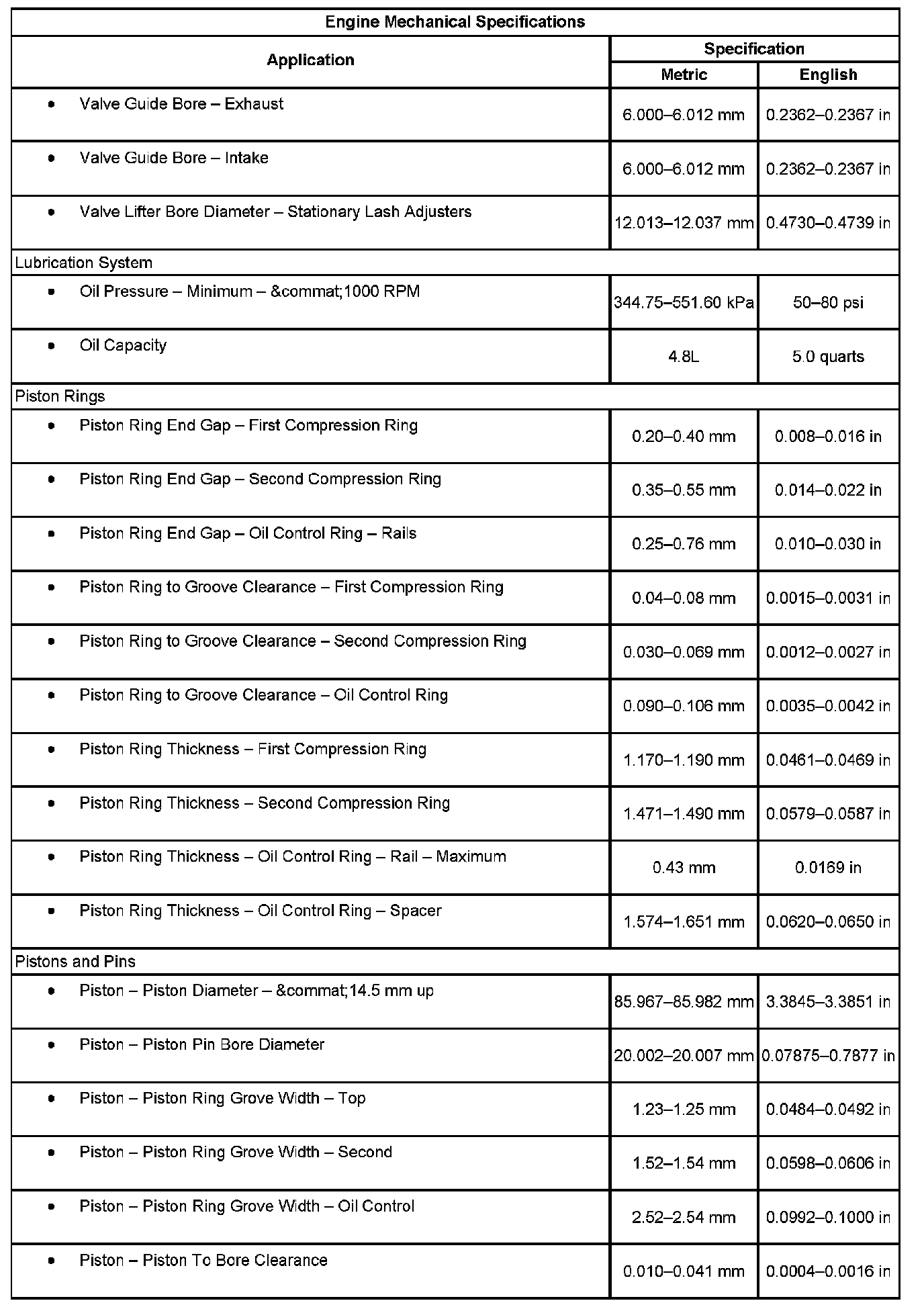 Engine Mechanical Specifications