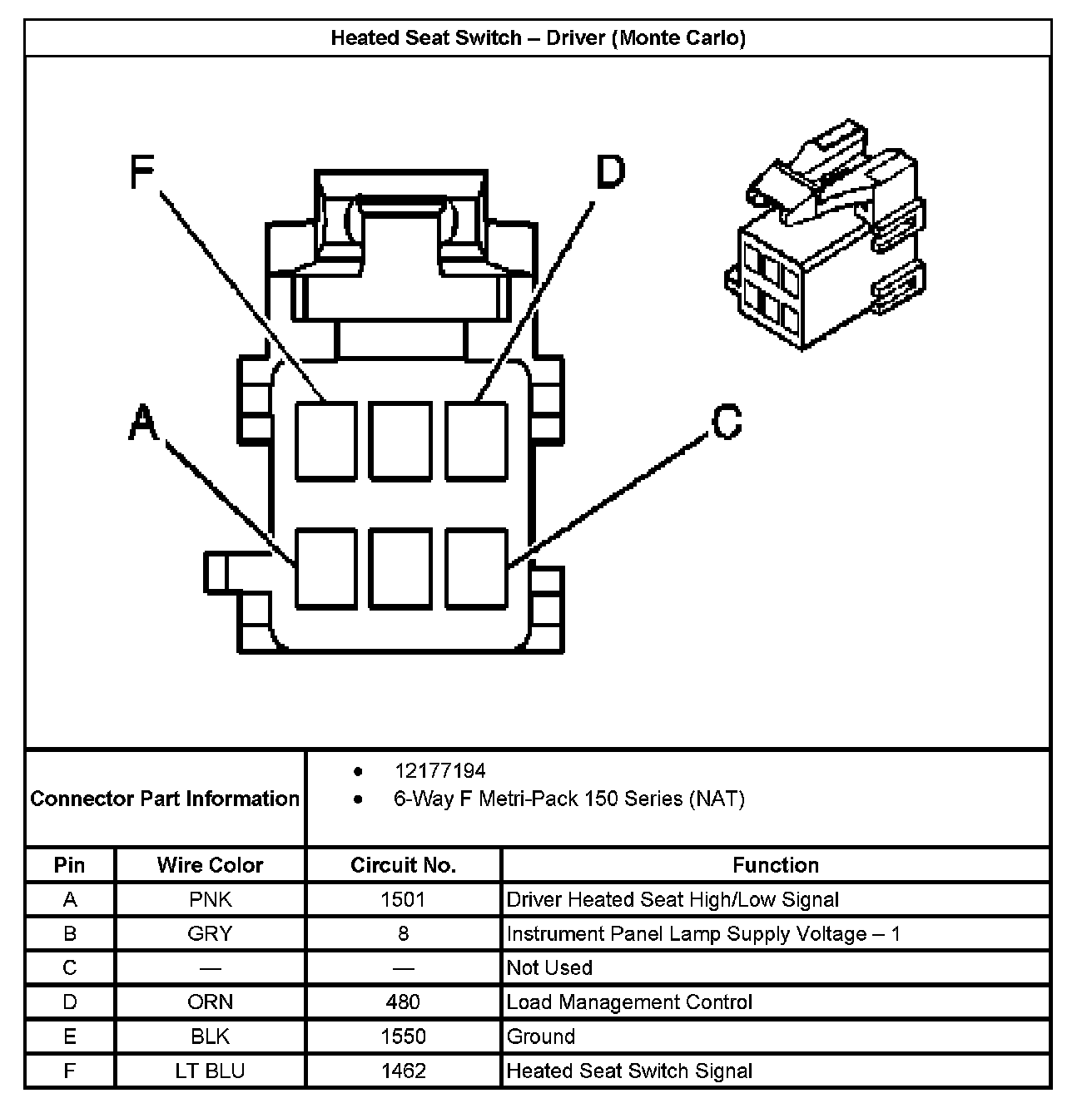 Heated Seat Switch - Driver: