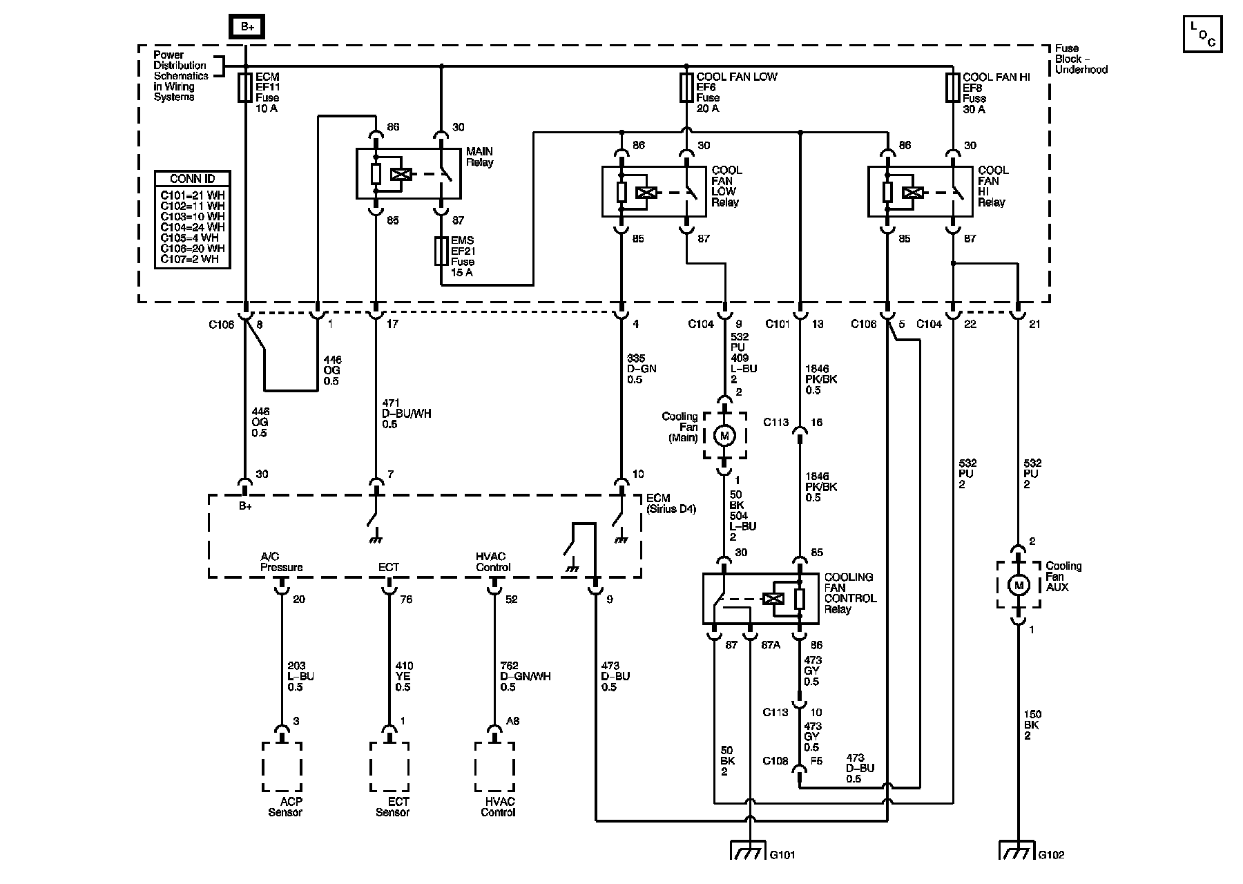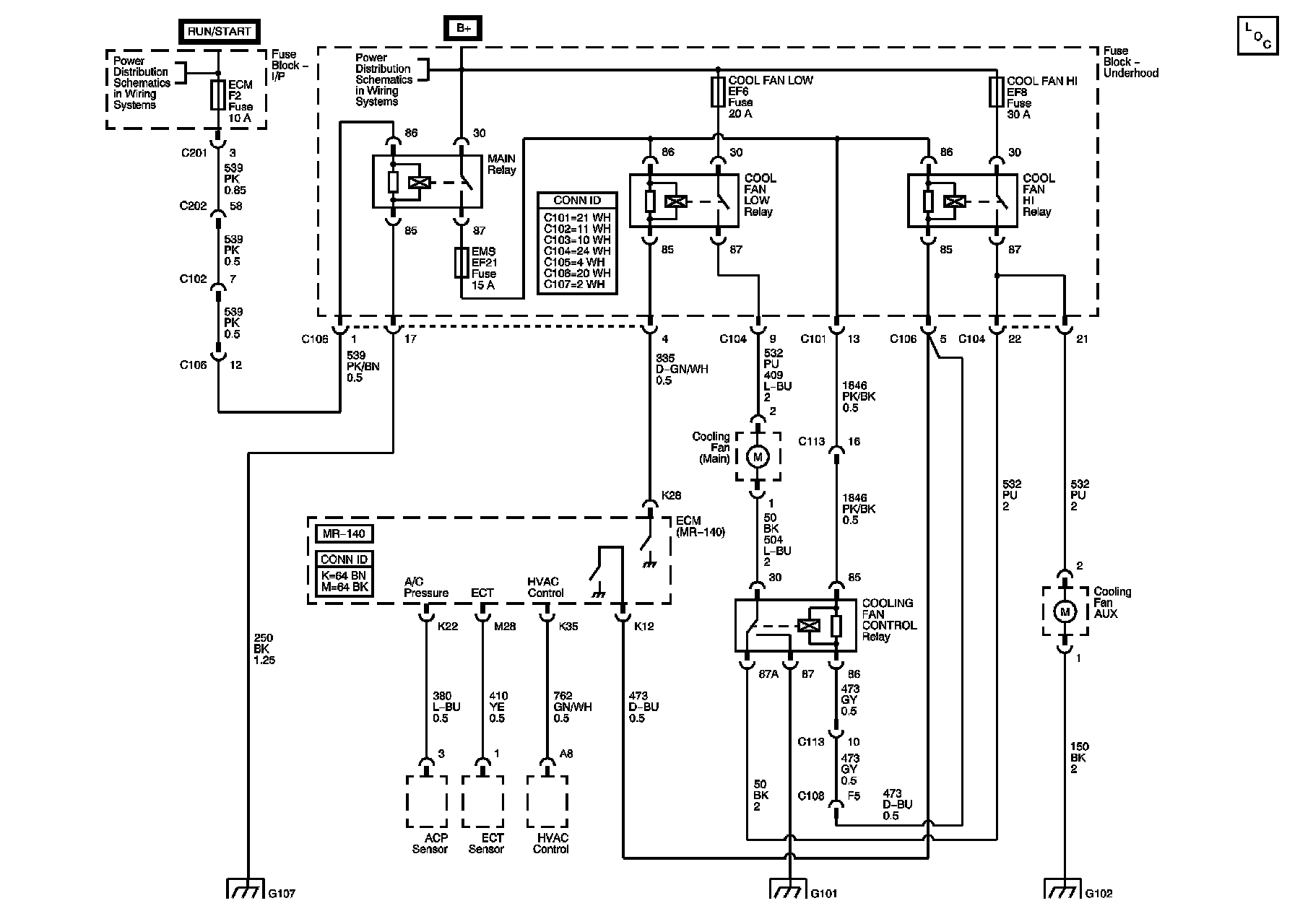 Underhood Fuse Block COOL FAN LOW and COOL FAN HI Fuses