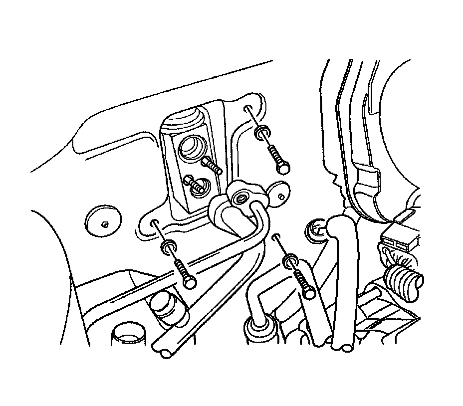 6. Remove the screws that secure the heater/air distributor case assembly to the cowl on the side of the heater core pipes.