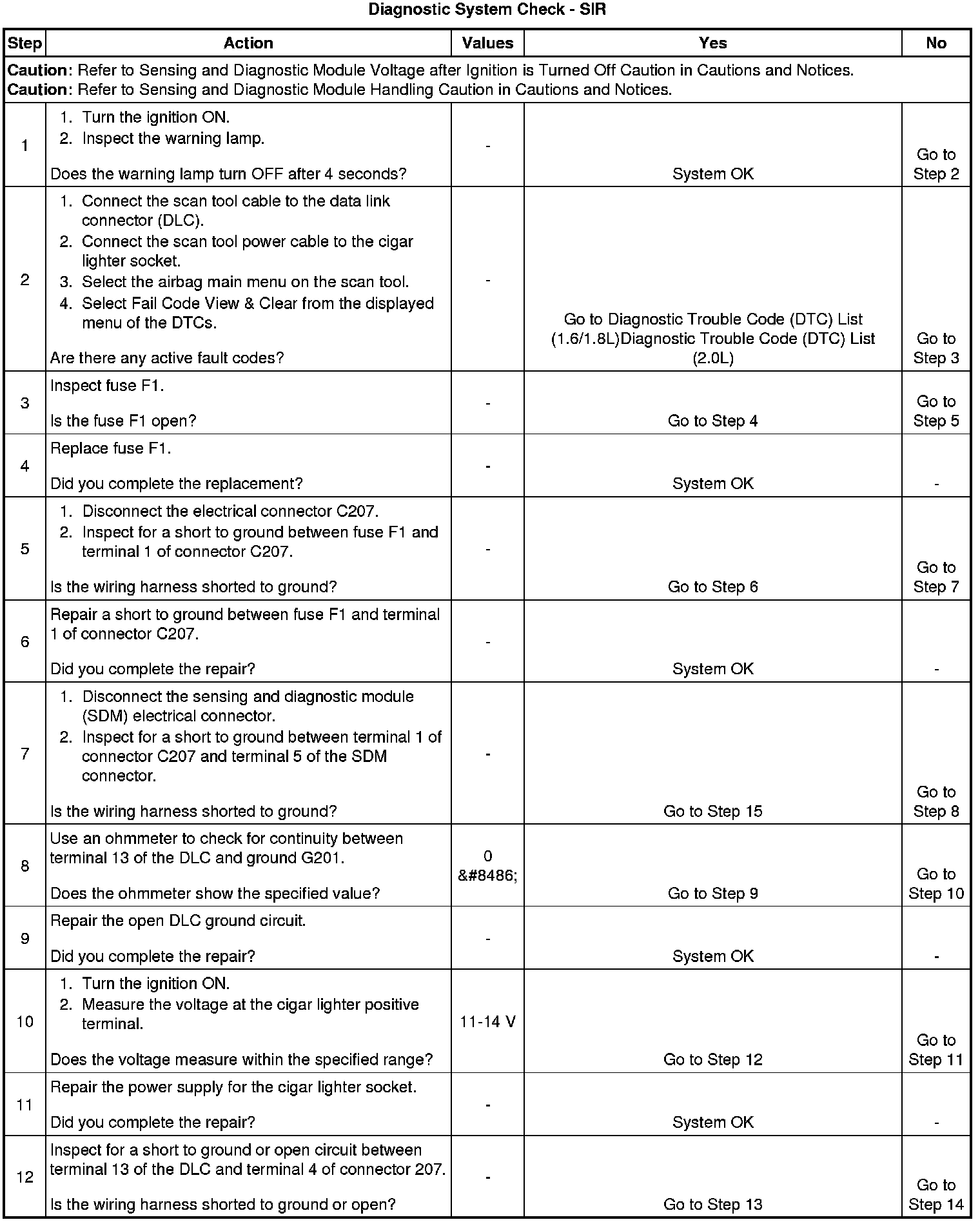 3. Repeat the Diagnostic System Check - SIR after any repair or diagnostic procedures have been performed to ensure that the repair has been made correctly and that no other malfunction exists.
