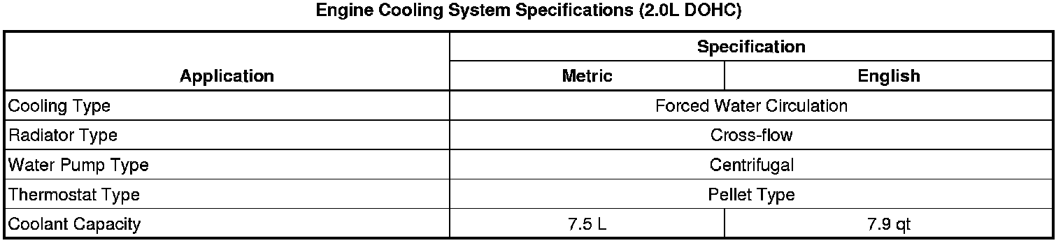 Engine Cooling System Specifications (2.0L DOHC)