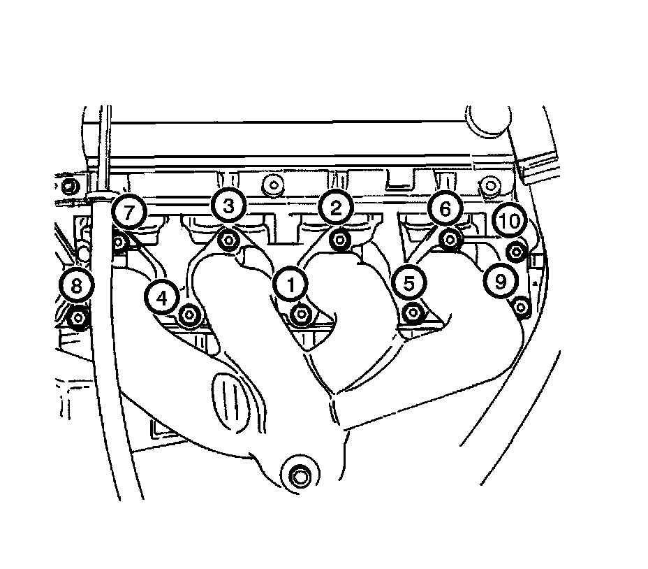 1. Install the exhaust manifold retaining nuts and tighten in the sequence shown.