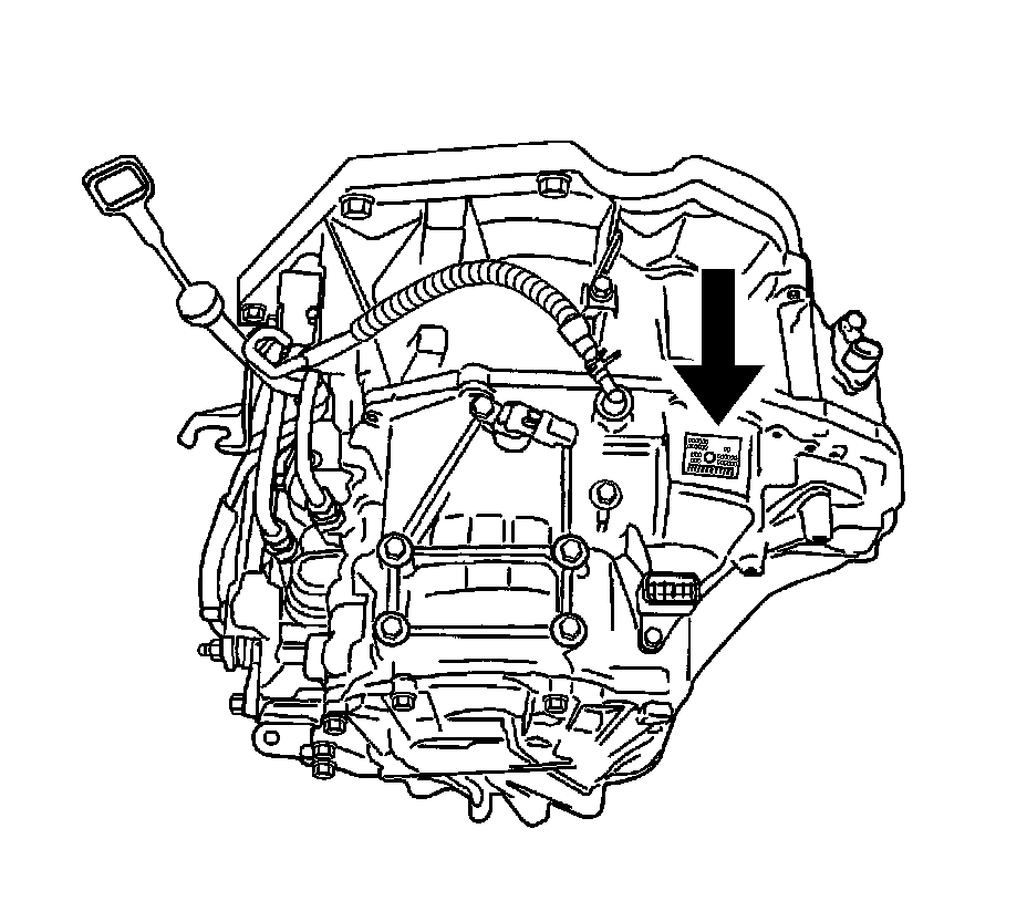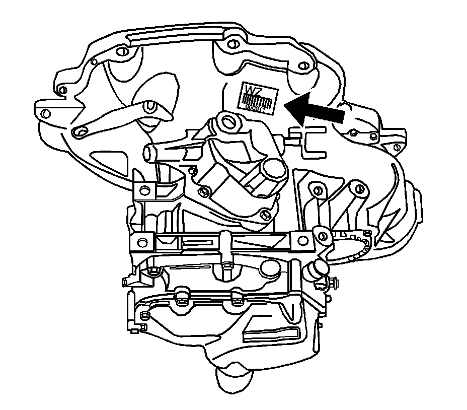 The manual transaxle identification number is attached to the top of the transmission case near the engine.
