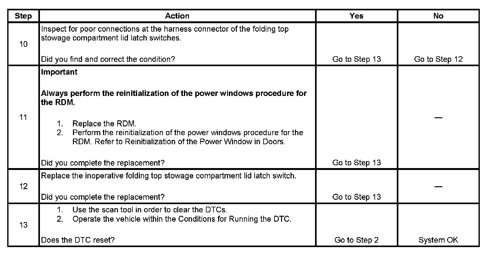 - The RDM has performed a folding top stowage compartment lid down command for approximately 30 seconds and the RDM does not detect the folding top stowage compartment lid latched signal.
