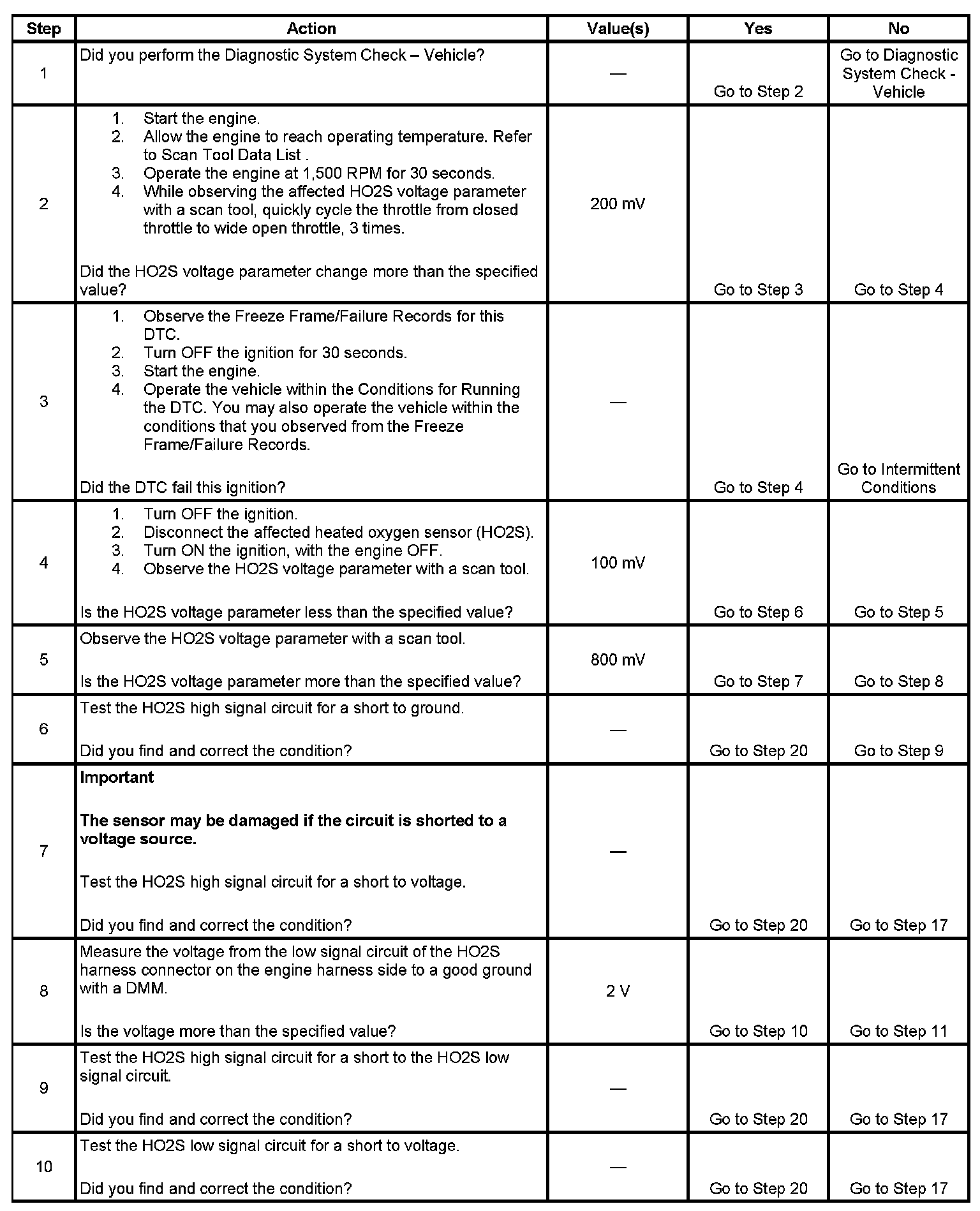 2. If the voltage does not change more than the specified value, the condition is present.