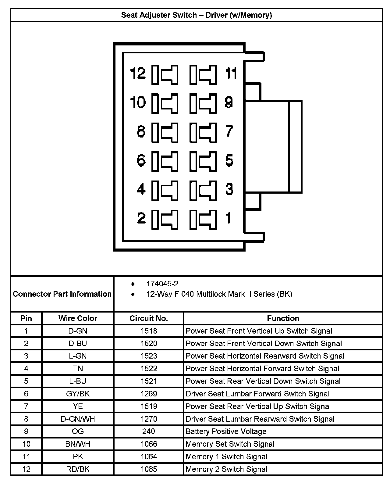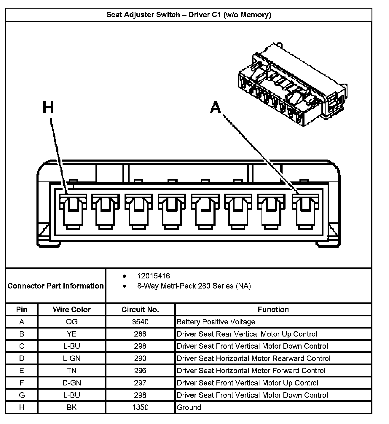 Seat Adjuster Switch - Driver C1 (without Memory):