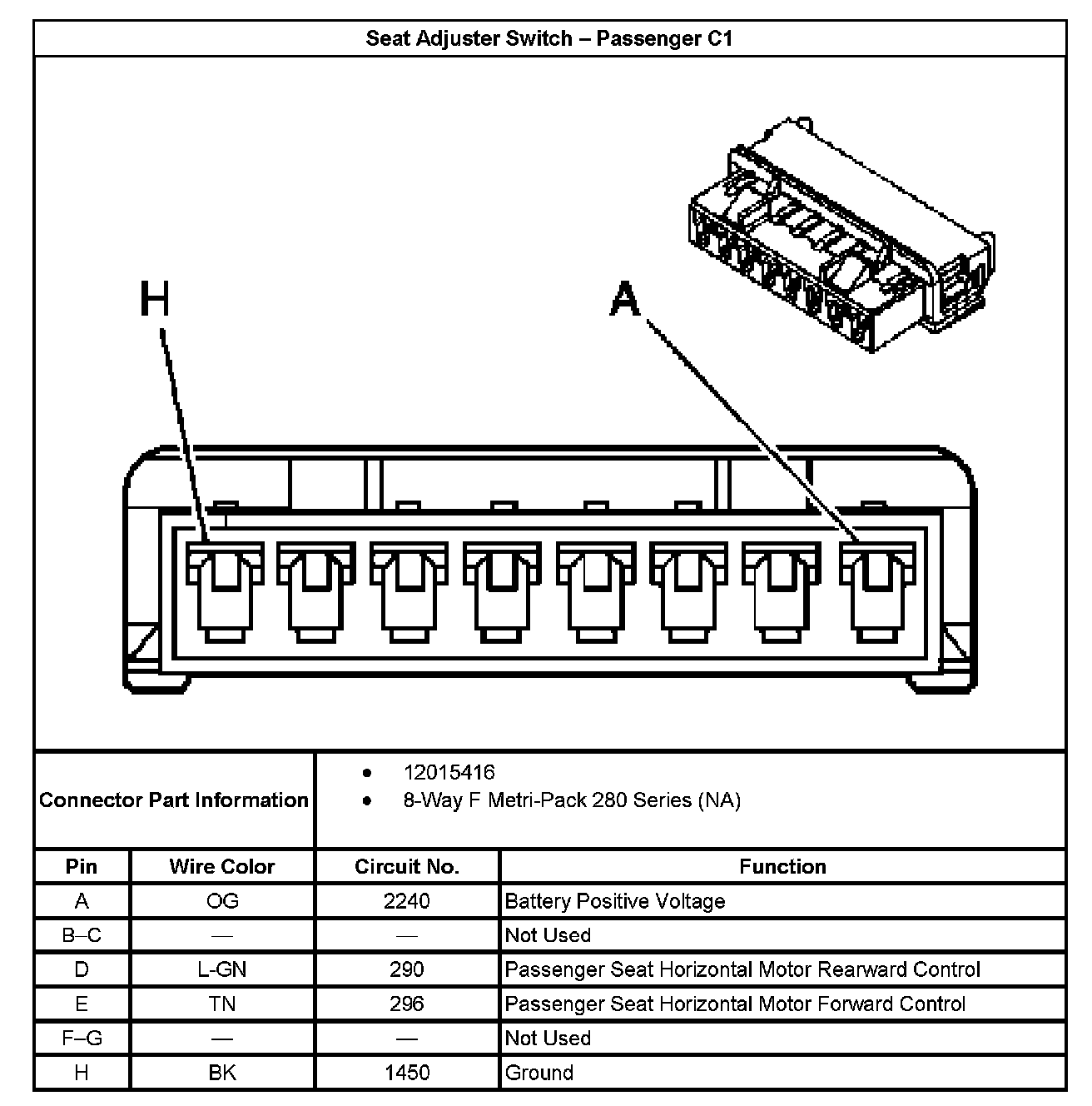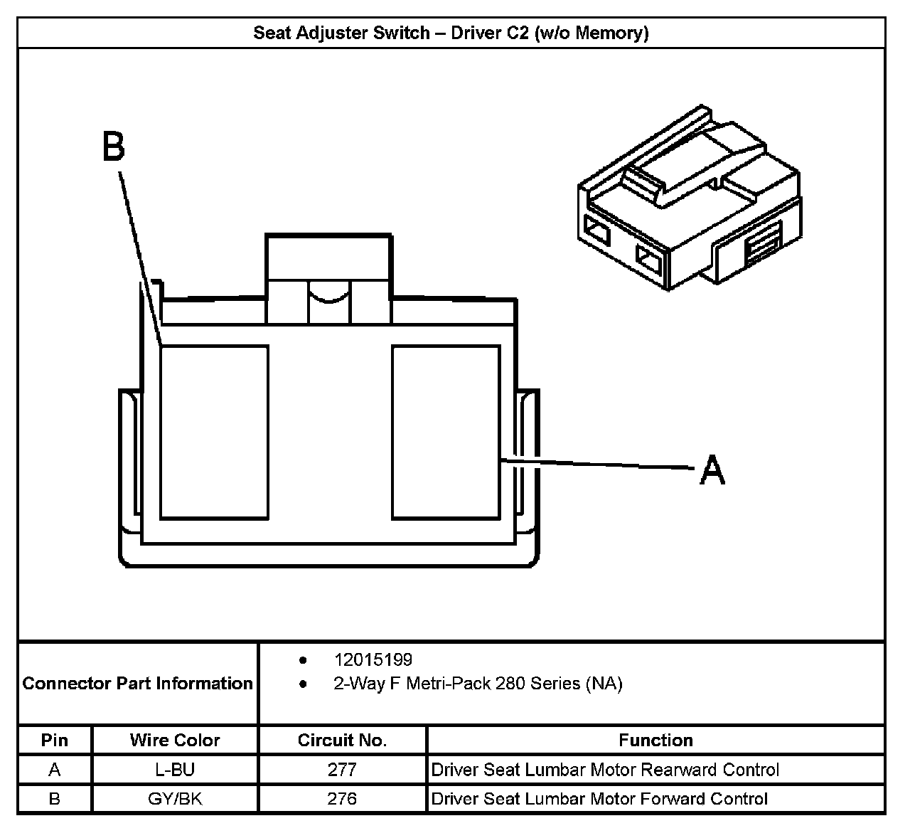 Seat Adjuster Switch - Driver C2 (without Memory):