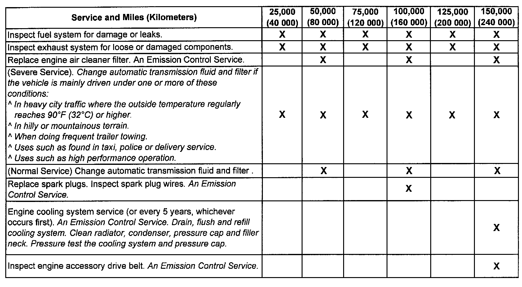 service (I or II) after the indicated miles (kilometers) shown for each item.