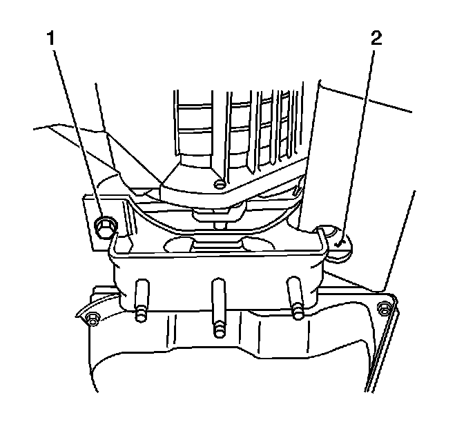 2. Install the bolts (1, 2) securing the transmission mount to the transmission.