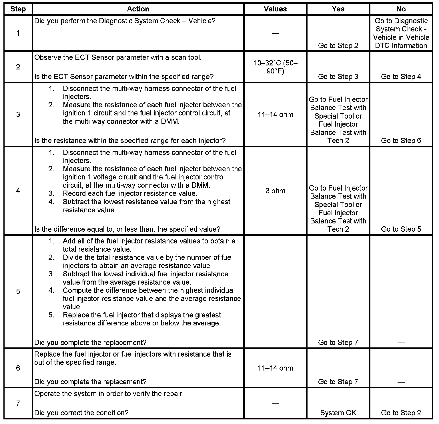 - Perform the fuel injector coil test within the conditions of the customer's concern. A fuel injector condition may only be apparent at a certain temperature, or under certain conditions.