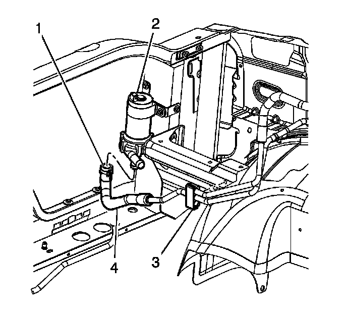 4. Remove the SGCM radiator outlet hose from the clip (3).
