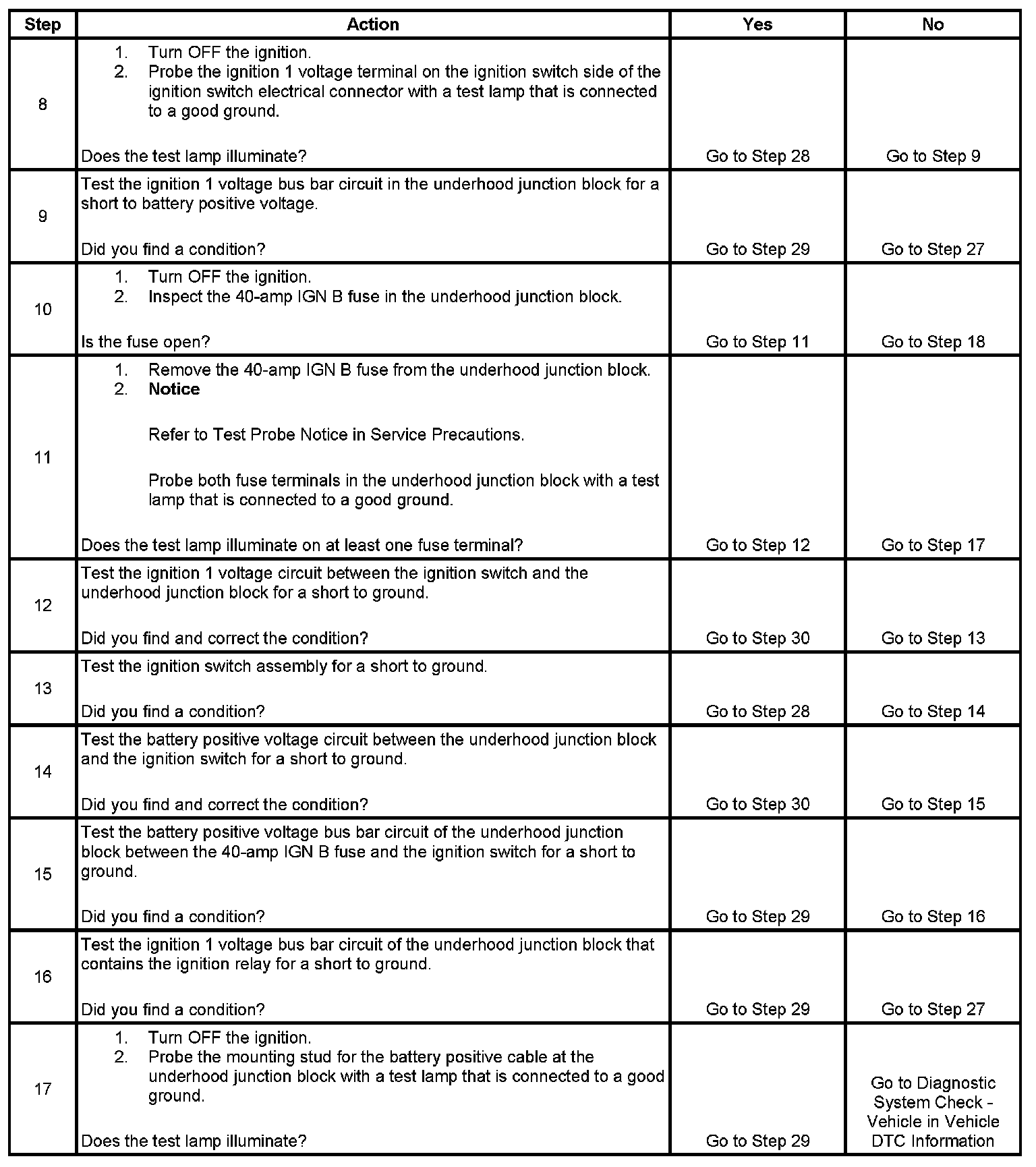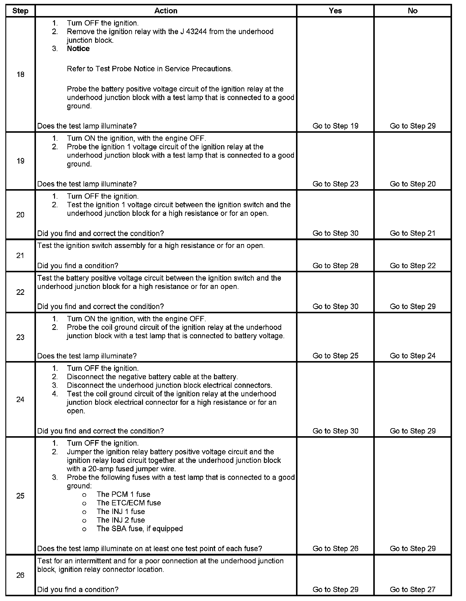 The ignition relay table assumes that the vehicle battery is fully charged. Refer to Battery Inspection/Test in Starting and Charging. Battery Inspection/Test