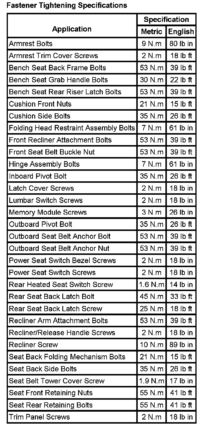Seats: Specifications