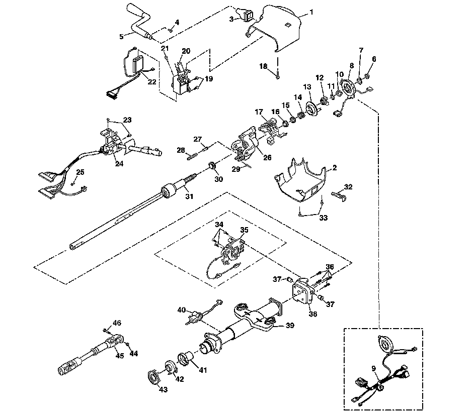 Steering Column Disassembled View (Column Shift Lean Shaft)