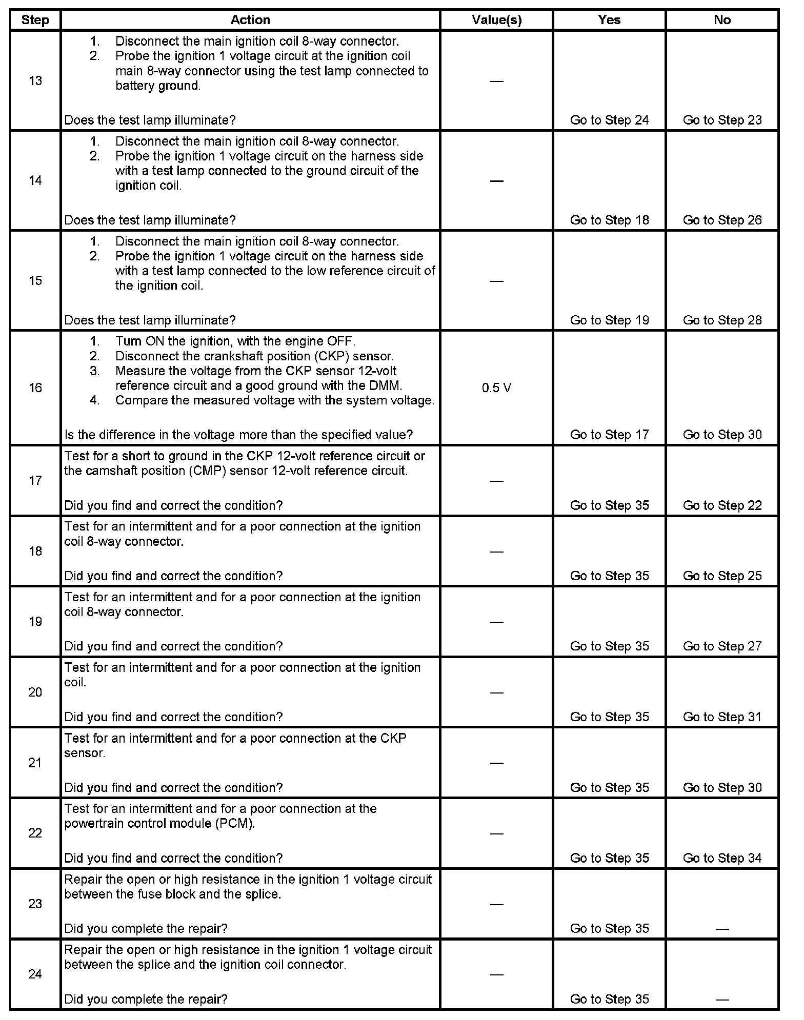 12. A good indication that the fuse is open is all off the misfire current counters are incrementing on one side of the engine. Inspect the ignition positive voltage circuit for a grounded circuit. If the fuse is open and the ignition coil circuits are OK, inspect the injector circuits for being grounded.