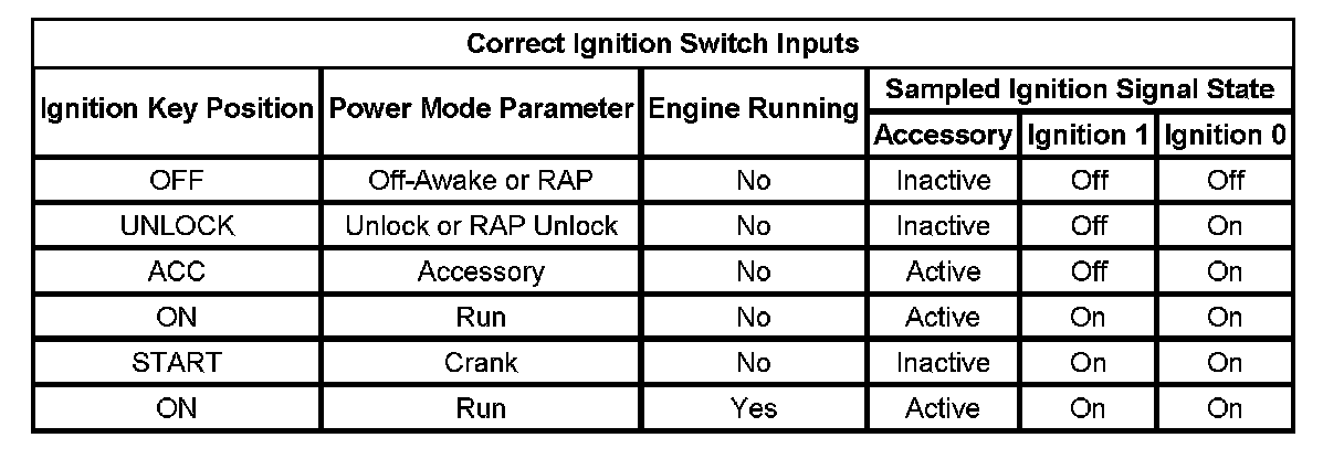 On vehicles that have several control modules connected by serial data circuits, one module is the power mode master (PMM). On this vehicle the PMM is the body control module (BCM). The BCM uses 3 signals from the ignition switch. These are the Ignition 0, Ignition 1, and Accessory.