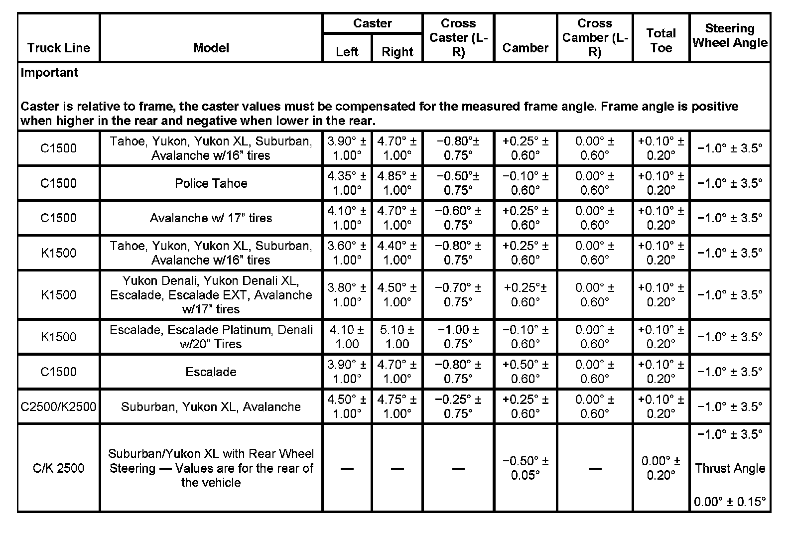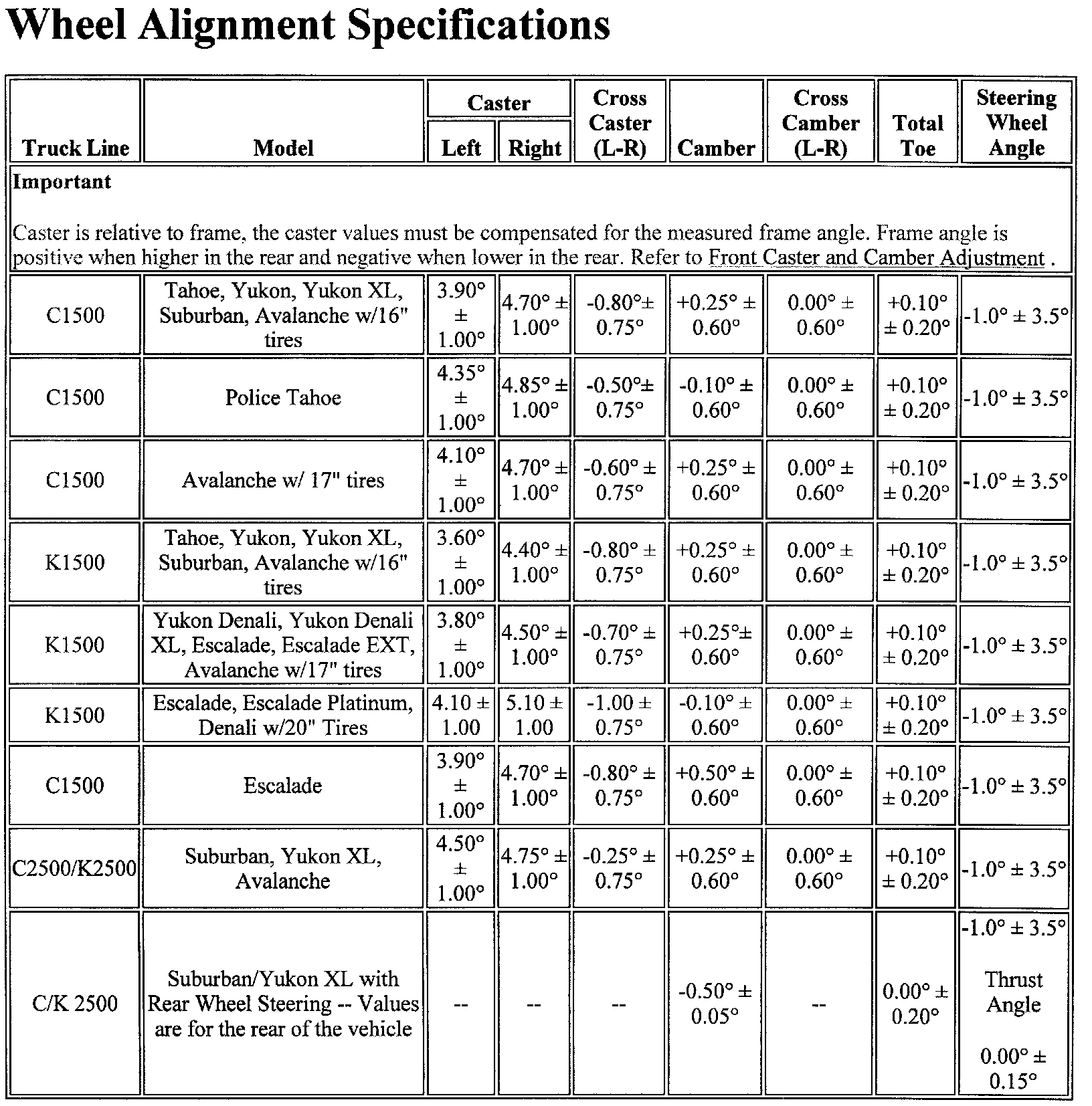 Wheel Alignment Specifications