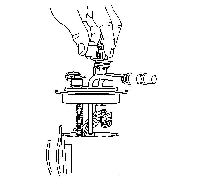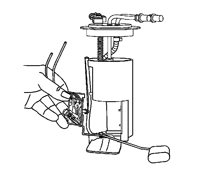 4. Squeeze the locking tabs together to remove the fuel level sensor from the fuel sender assembly.