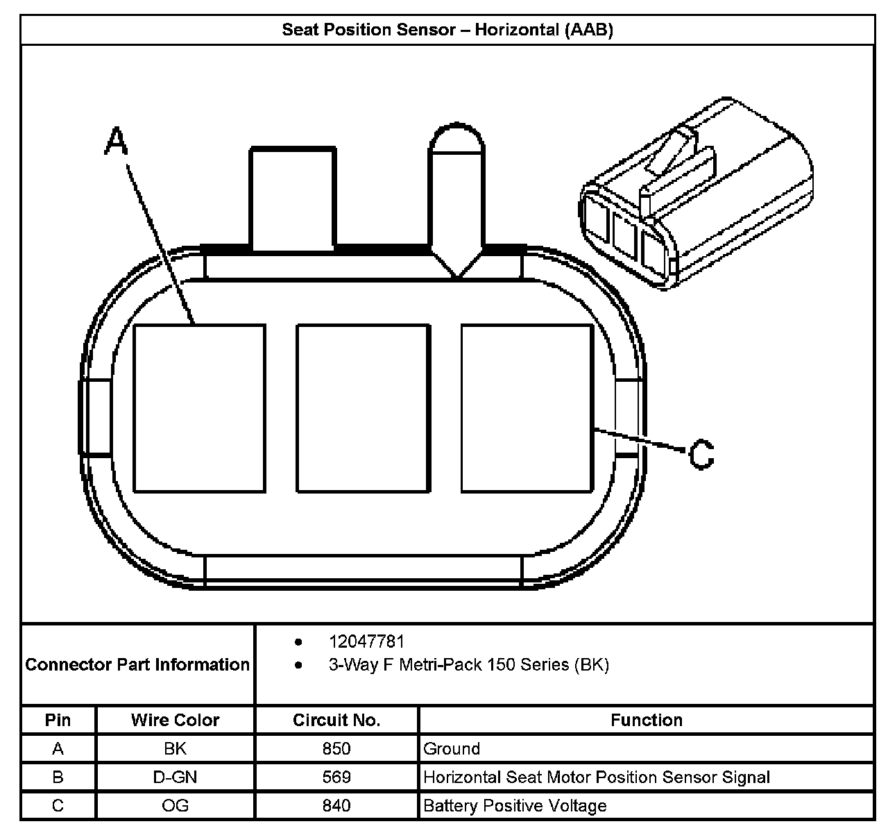 Seat Position Sensor - Horizontal (With RPO Code AAB):