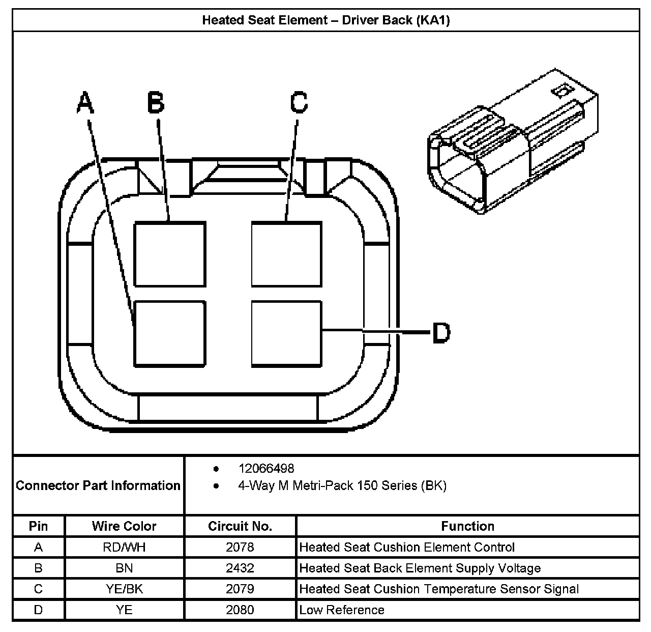 Heated Seat Element - Passenger Back (With RPO Code KA1):