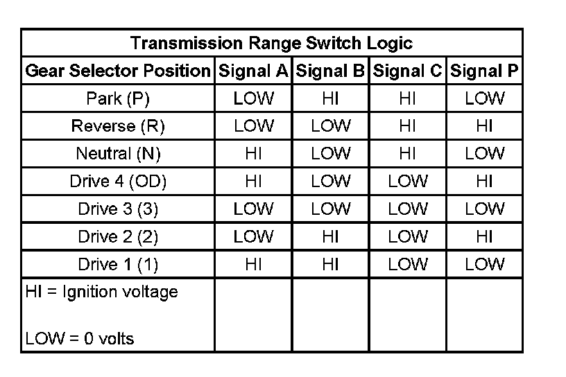 Transmission Range Switch Logic: