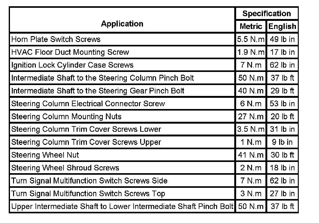 Fastener Tightening Specifications: