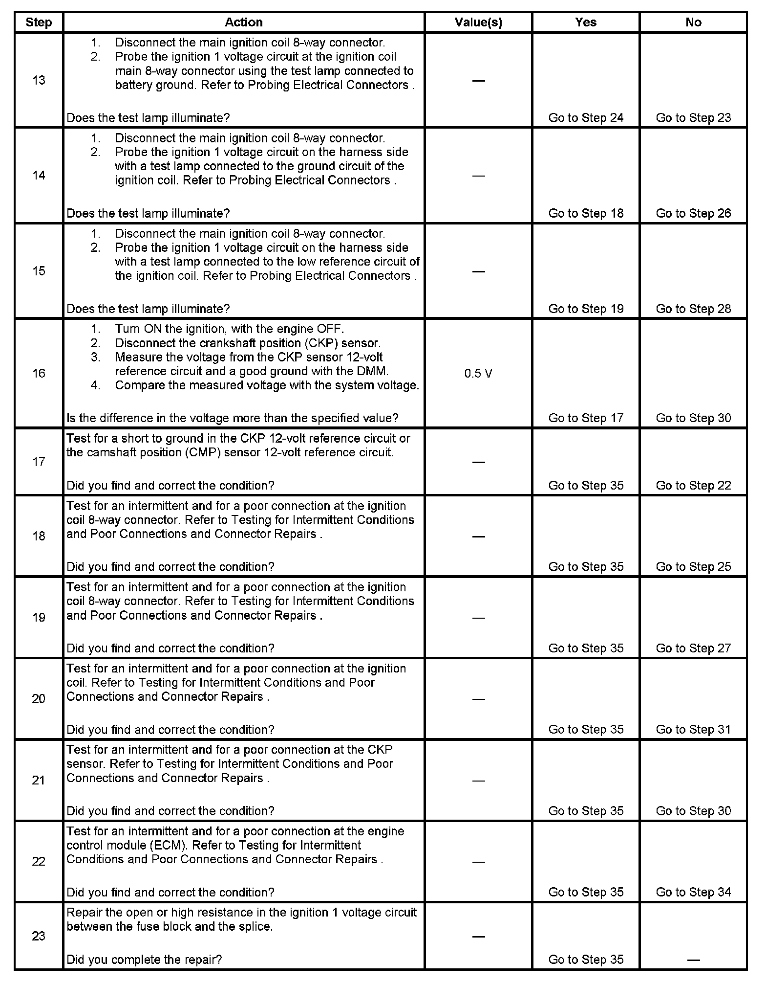 12. A good indication that the fuse is open is all off the misfire current counters are incrementing on one side of the engine. Inspect the ignition positive voltage circuit for a grounded circuit. If the fuse is open and the ignition coil circuits are OK, inspect the injector circuits for being grounded.