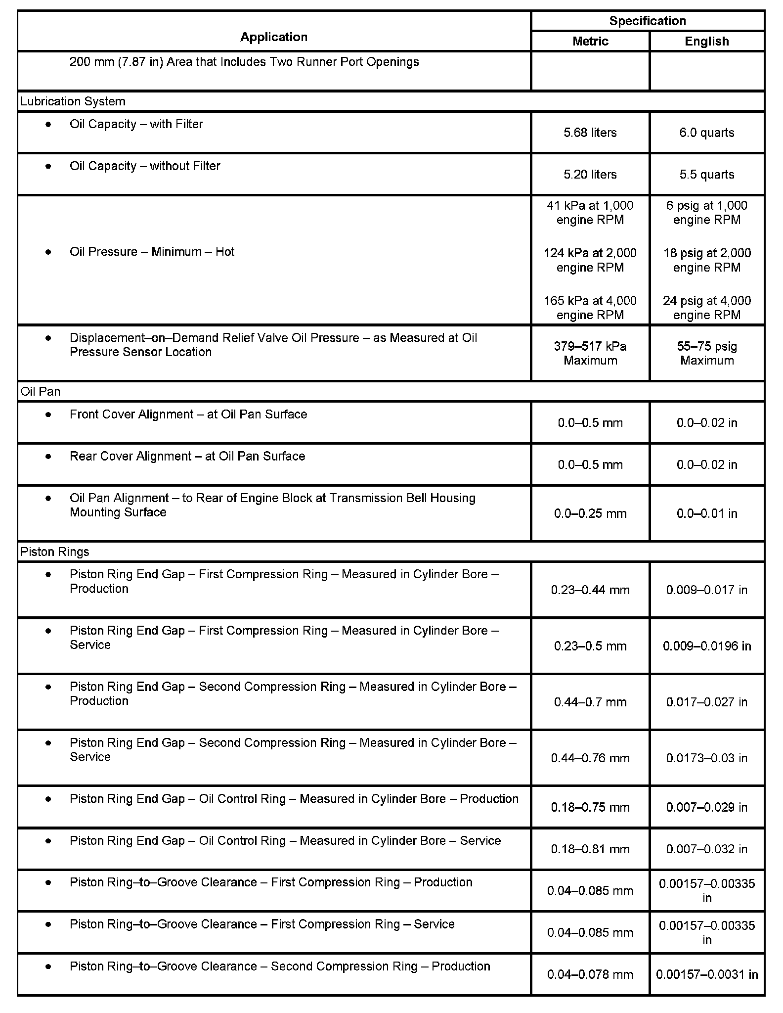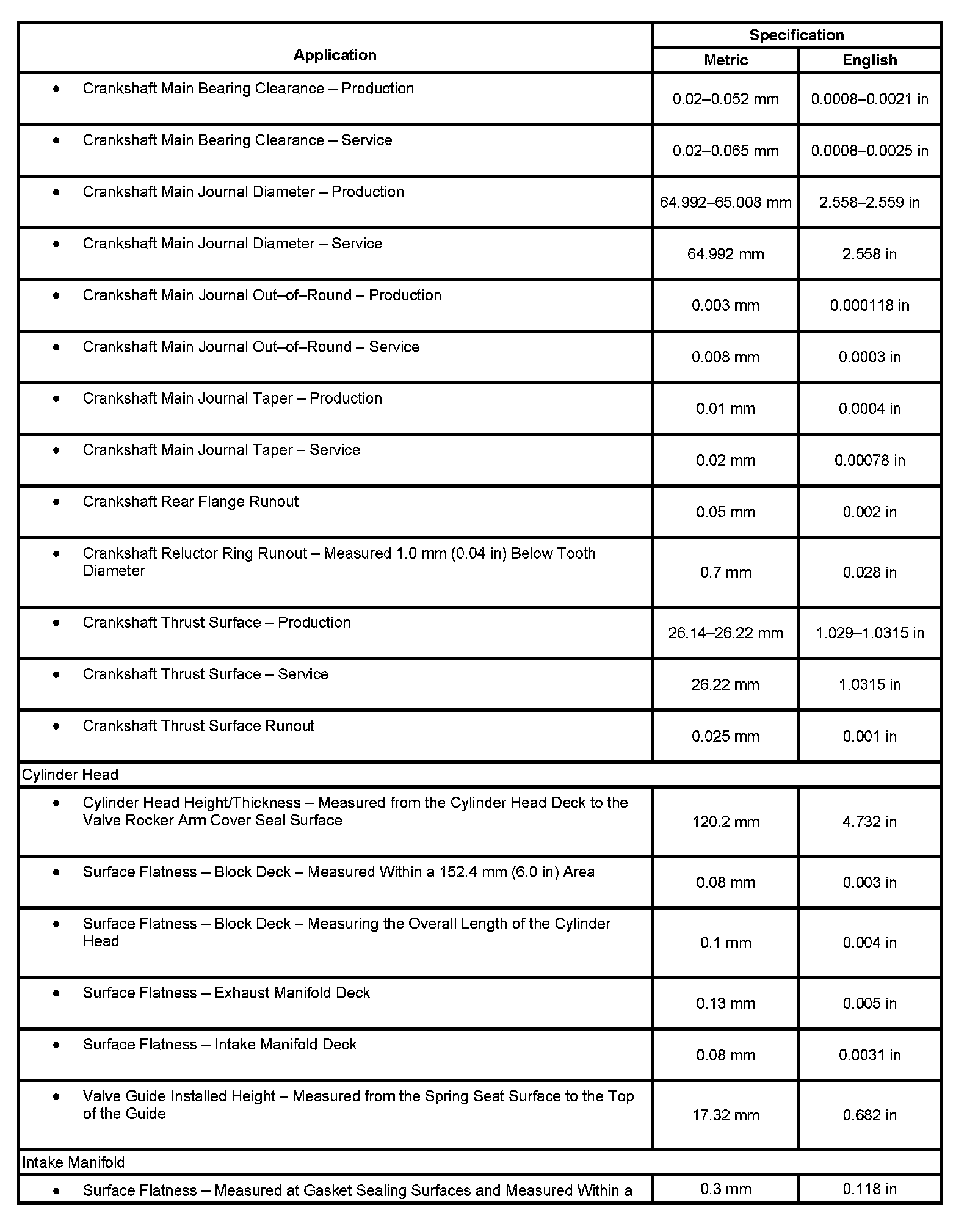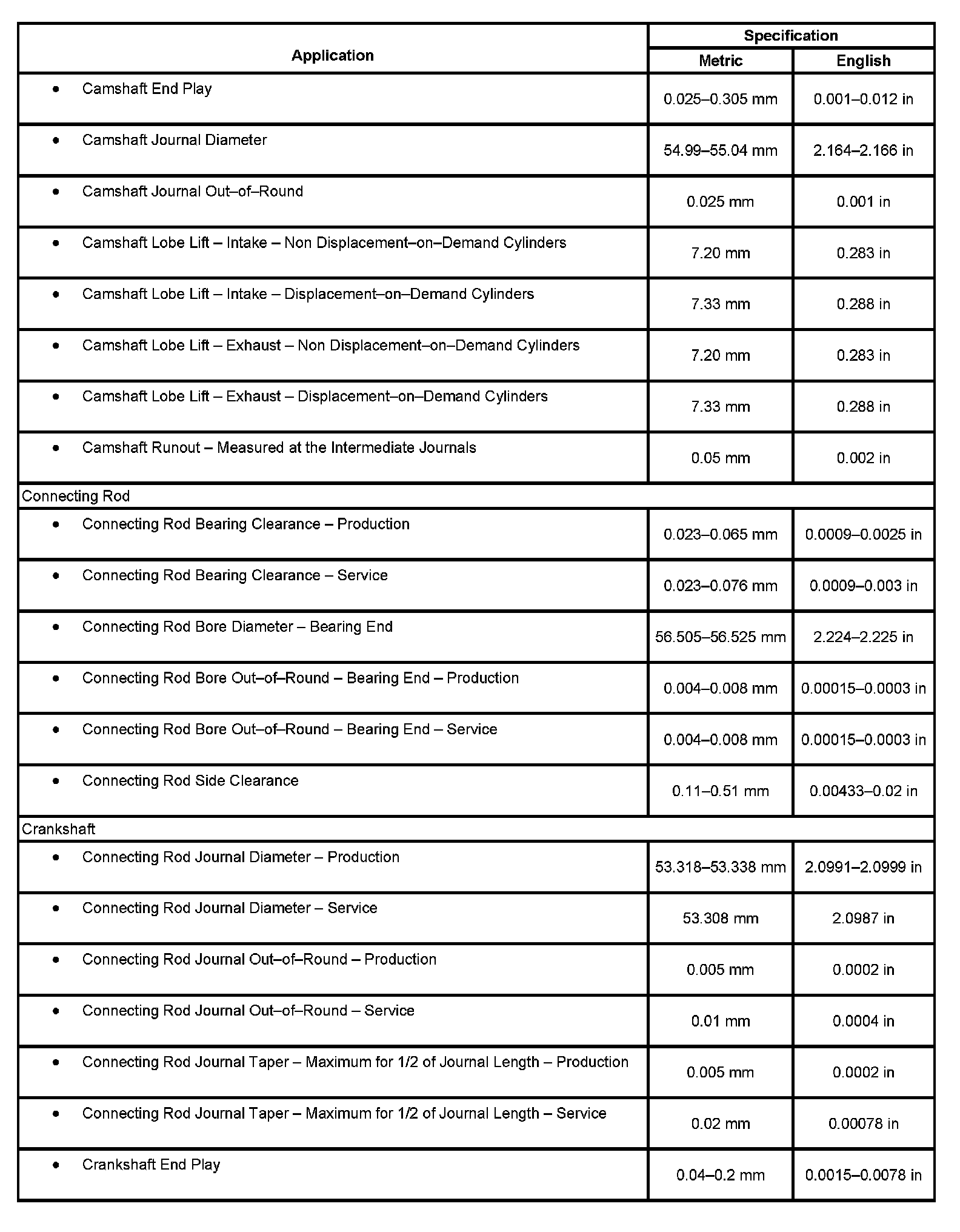 Engine Mechanical Specifications