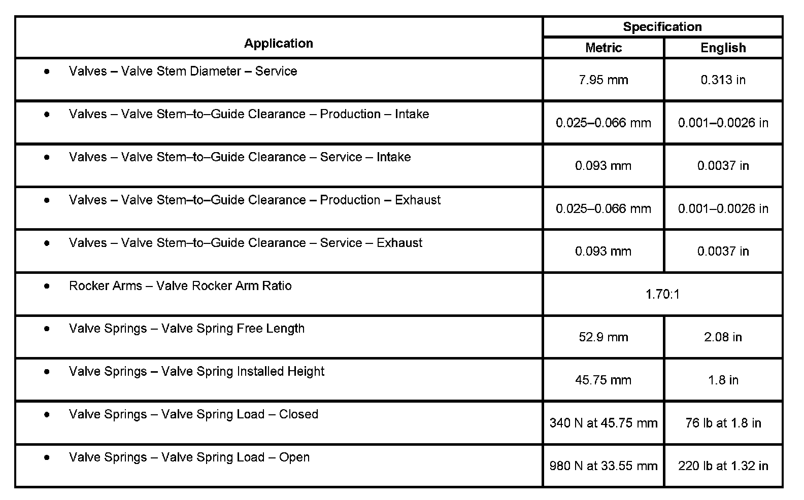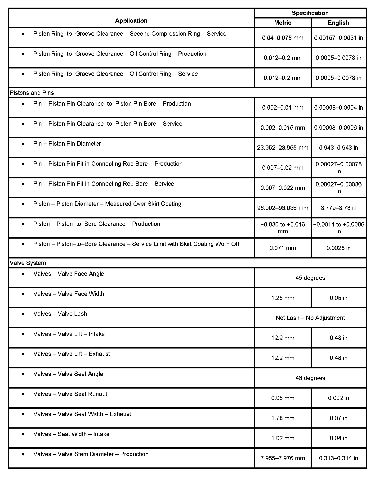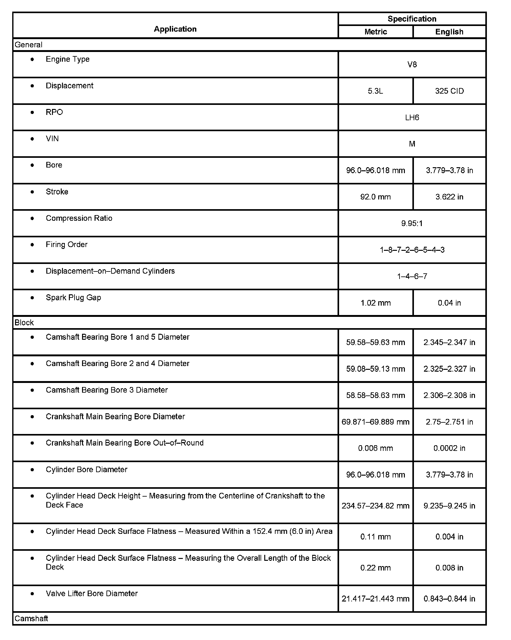 Engine Mechanical Specifications