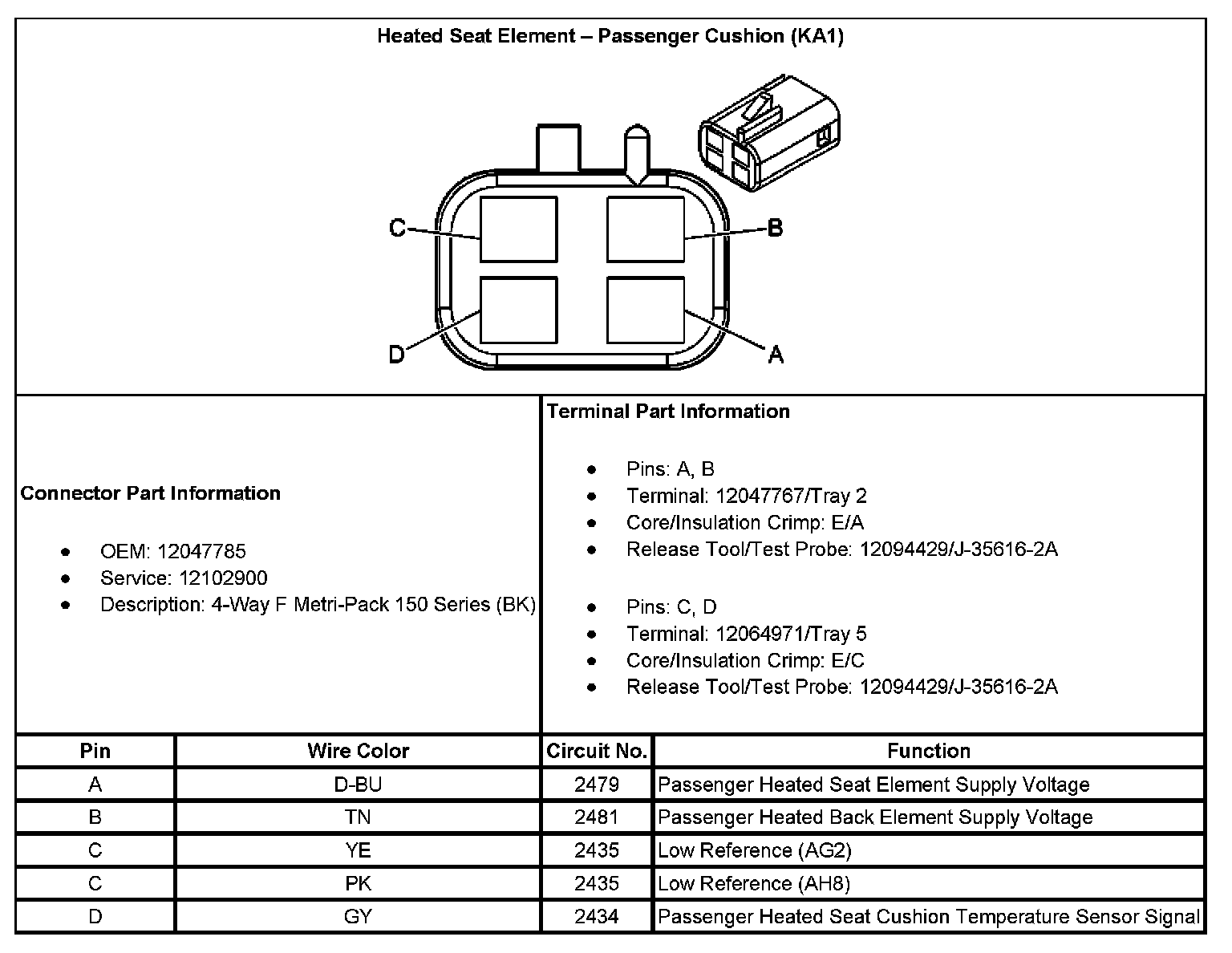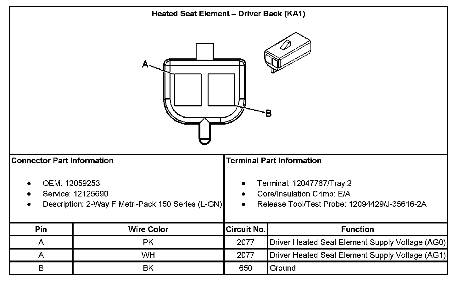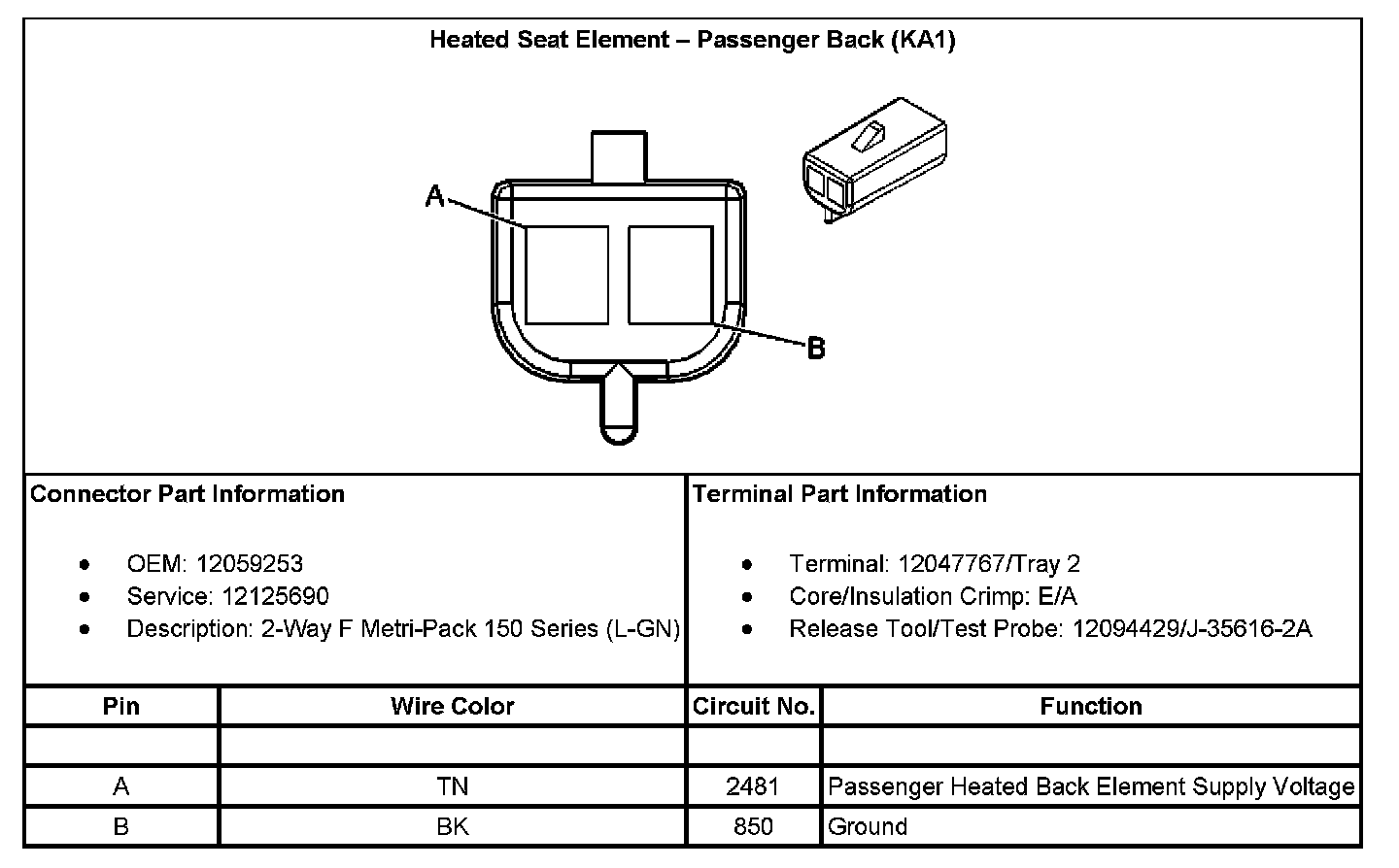 Heated Seat Element - Passenger Back (With RPO Code KA1):