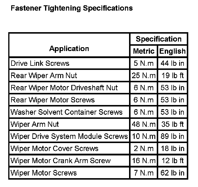 Wiper and Washer Systems: Specifications