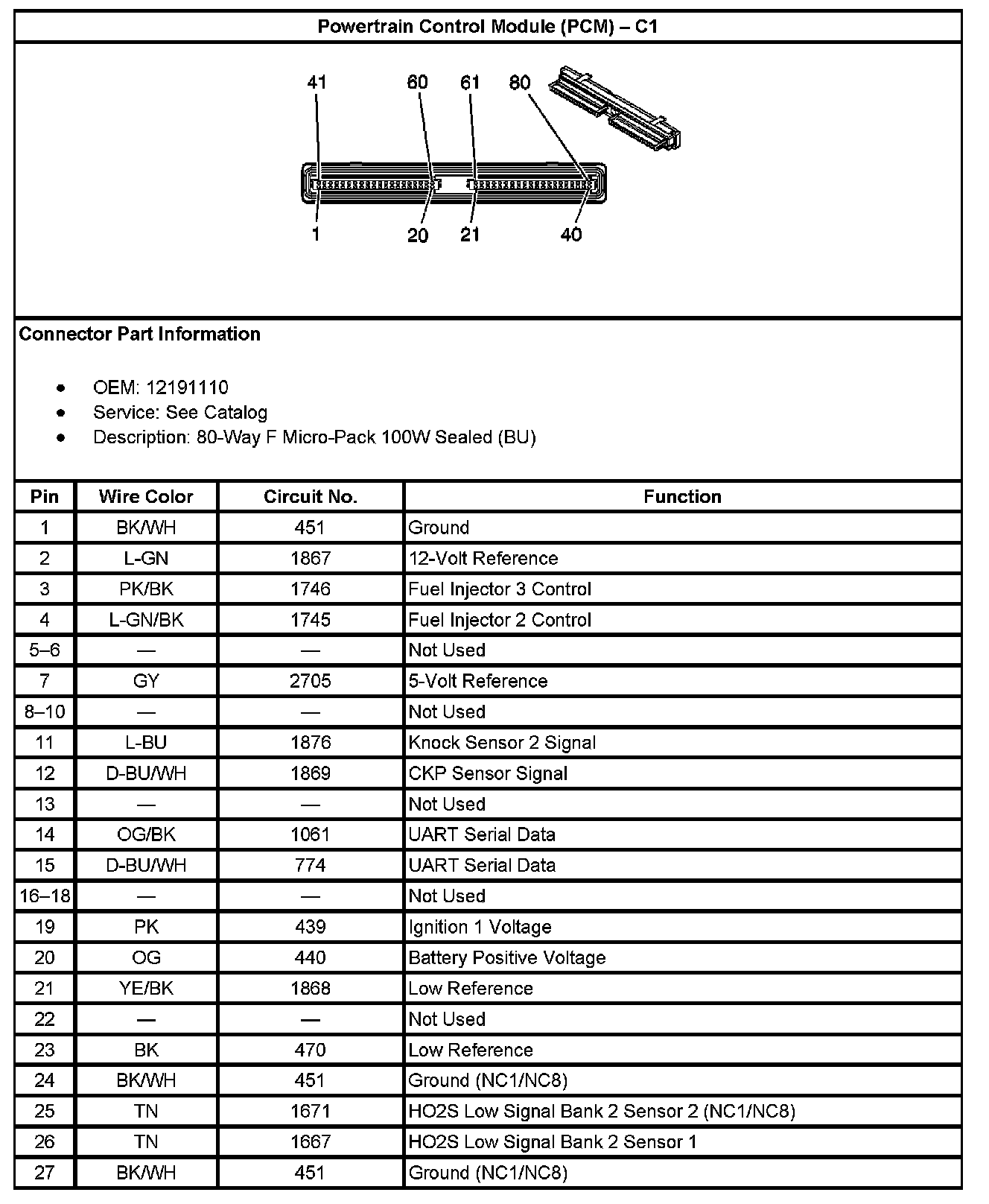 Powertrain Control Module (PCM) - C1 (Part 2):