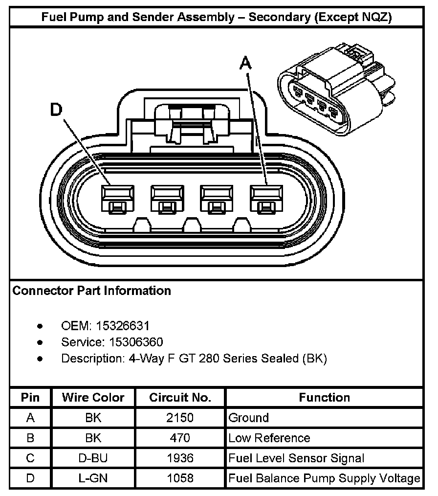 Fuel Pump And Sender Assembly - Secondary (Except NQZ):