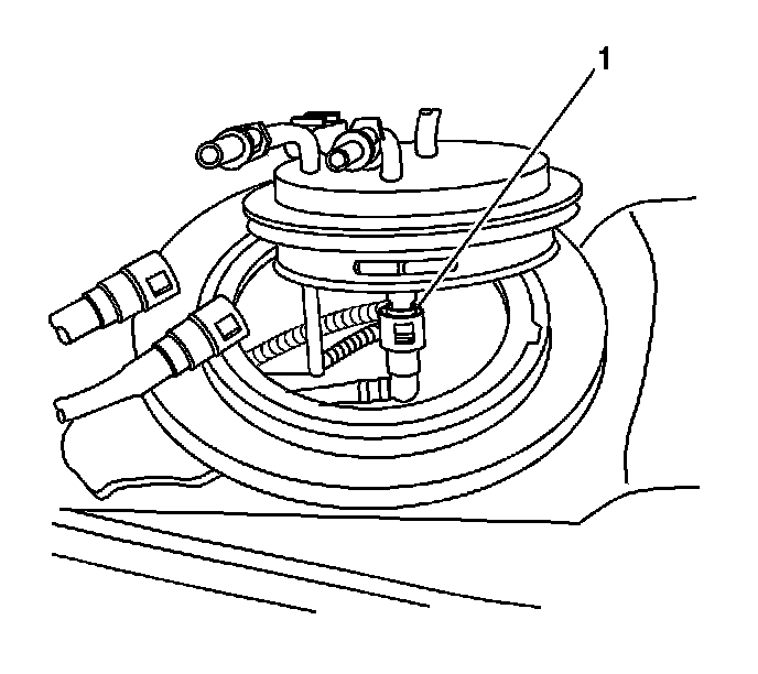 6. Disconnect the vapor line quick connect fitting (1) in order to remove the module.