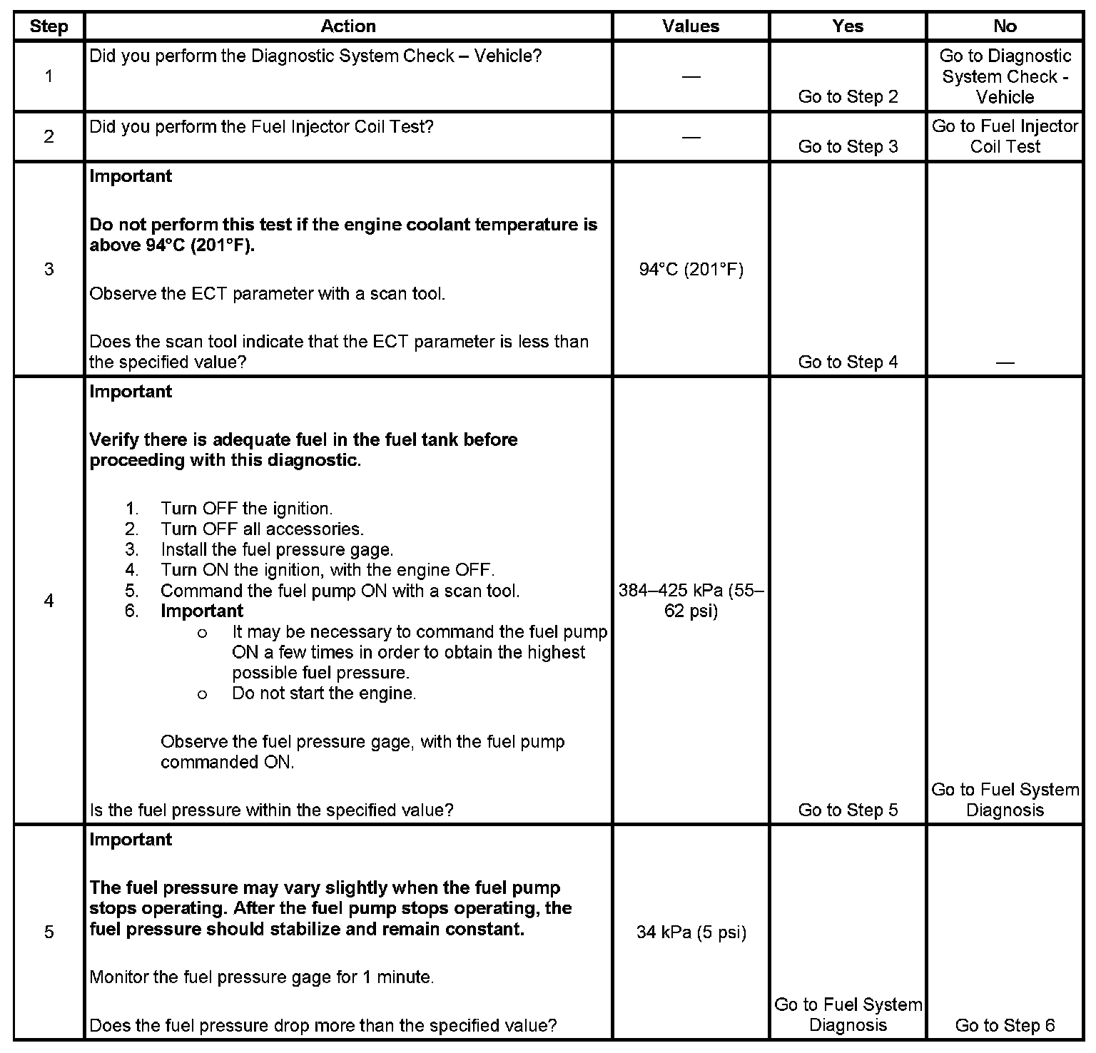 3. The engine coolant temperature must be below the operating temperature in order to avoid irregular fuel pressure readings due to hot soak fuel boiling.