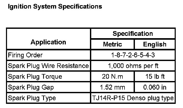 Ignition System Specifications: