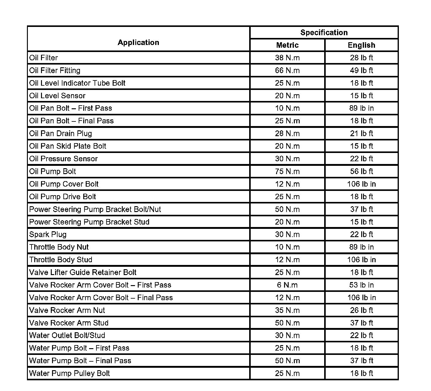 Fastener Tightening Specifications: