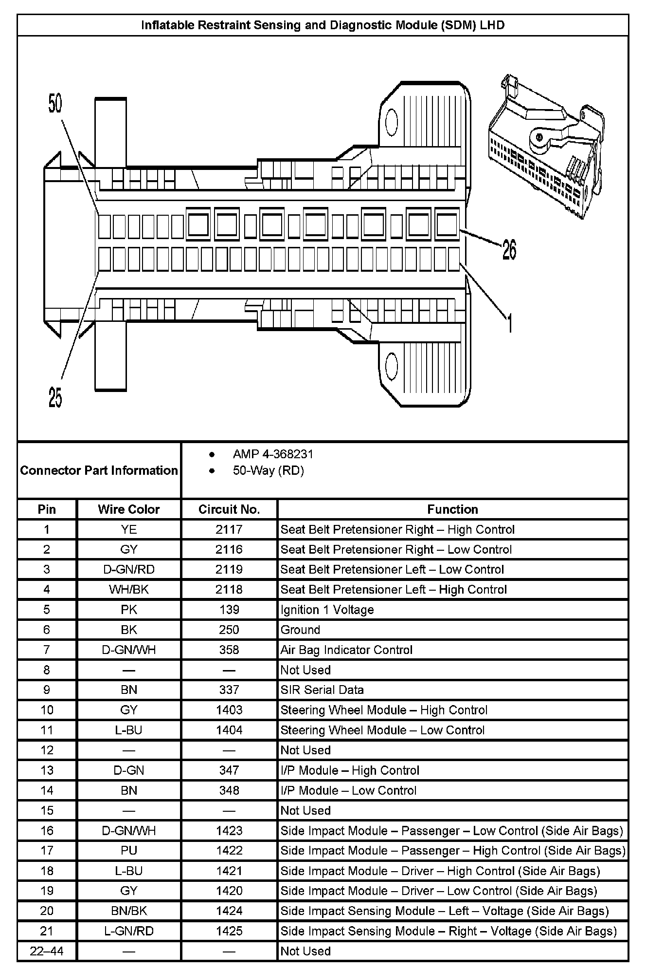 Inflatable Restraint Sensing And Diagnostic Module (SDM) LHD (Part 2):