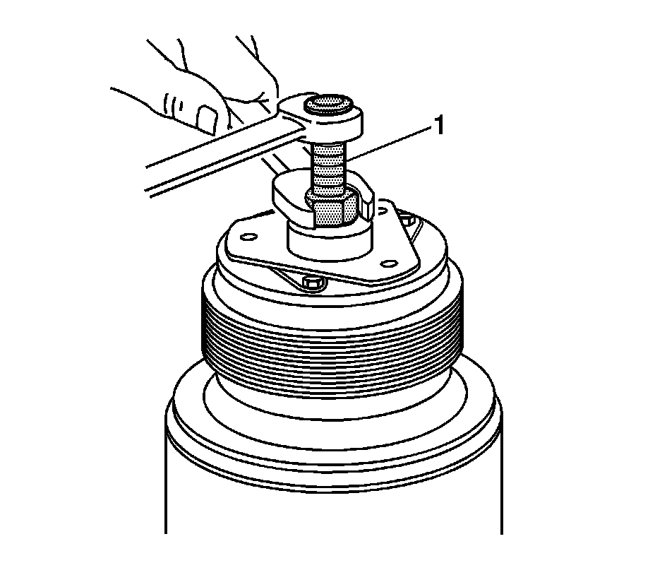 5. Install the J 33013-B (1) and the bearing onto the clutch drive plate. Thread the center bolt onto the compressor shaft.