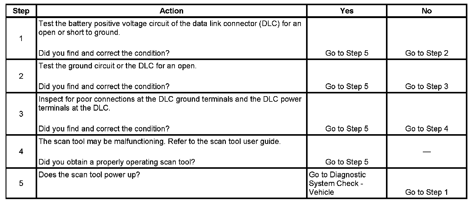 4. The battery positive voltage and ground circuits of the DLC are functioning properly. The malfunction must be due to the scan tool.