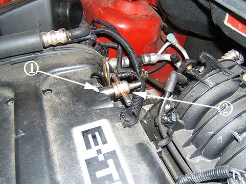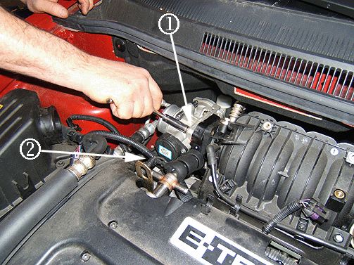 2. Remove the MAP sensor bolt/screw from the intake manifold (2) and discard the fastener.