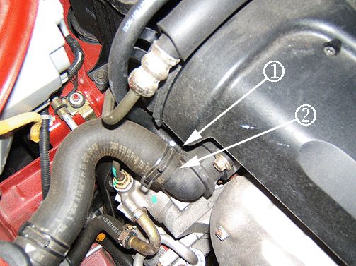 1. Disconnect the PCV valve heater hose from the PCV Valve (2).