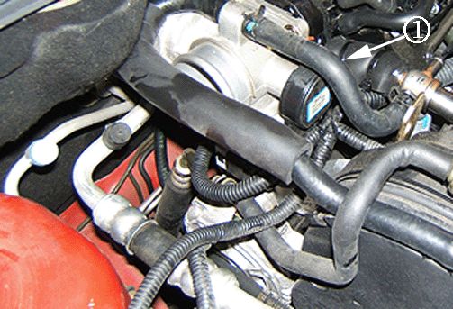 2. Disconnect the breather tube at the cam cover (3).