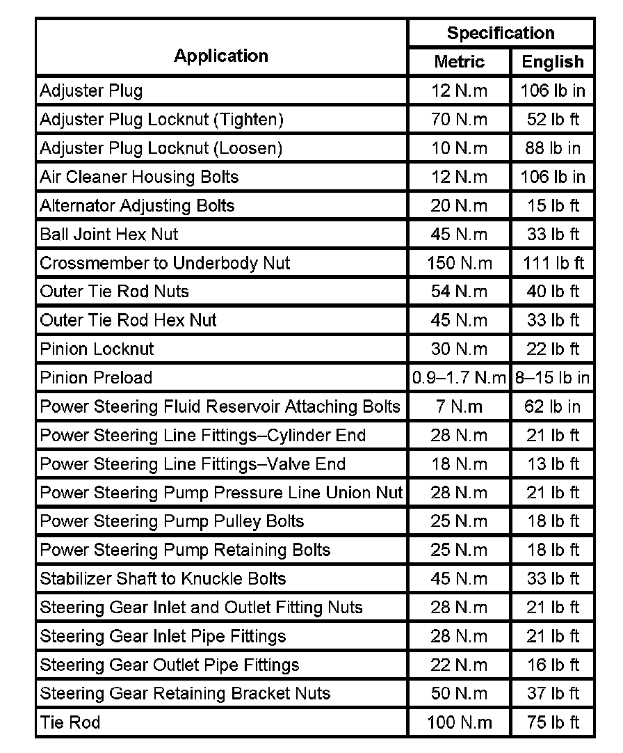 Fastener Tightening Specifications: