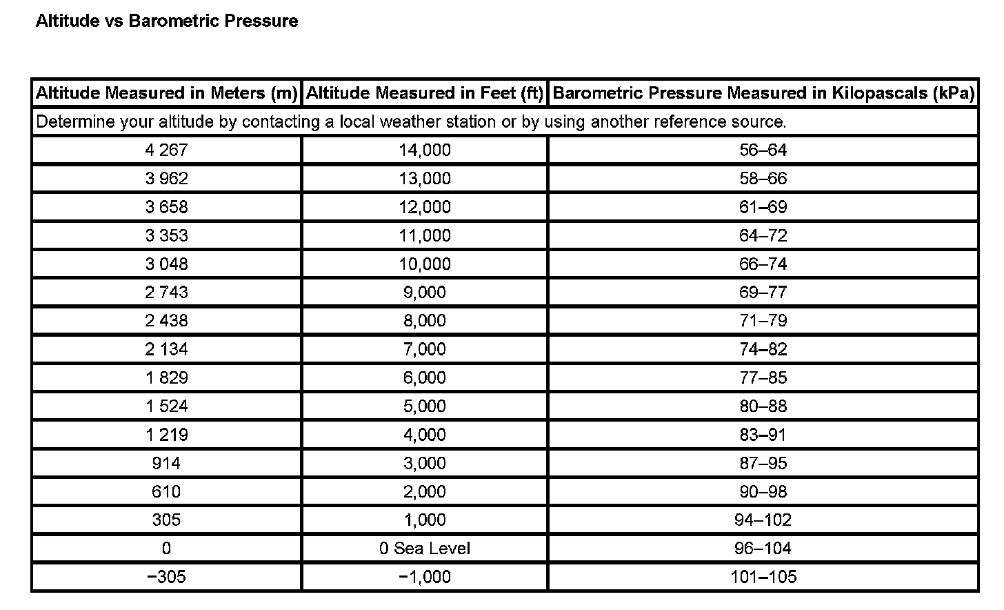 Altitude vs Barometric Pressure: