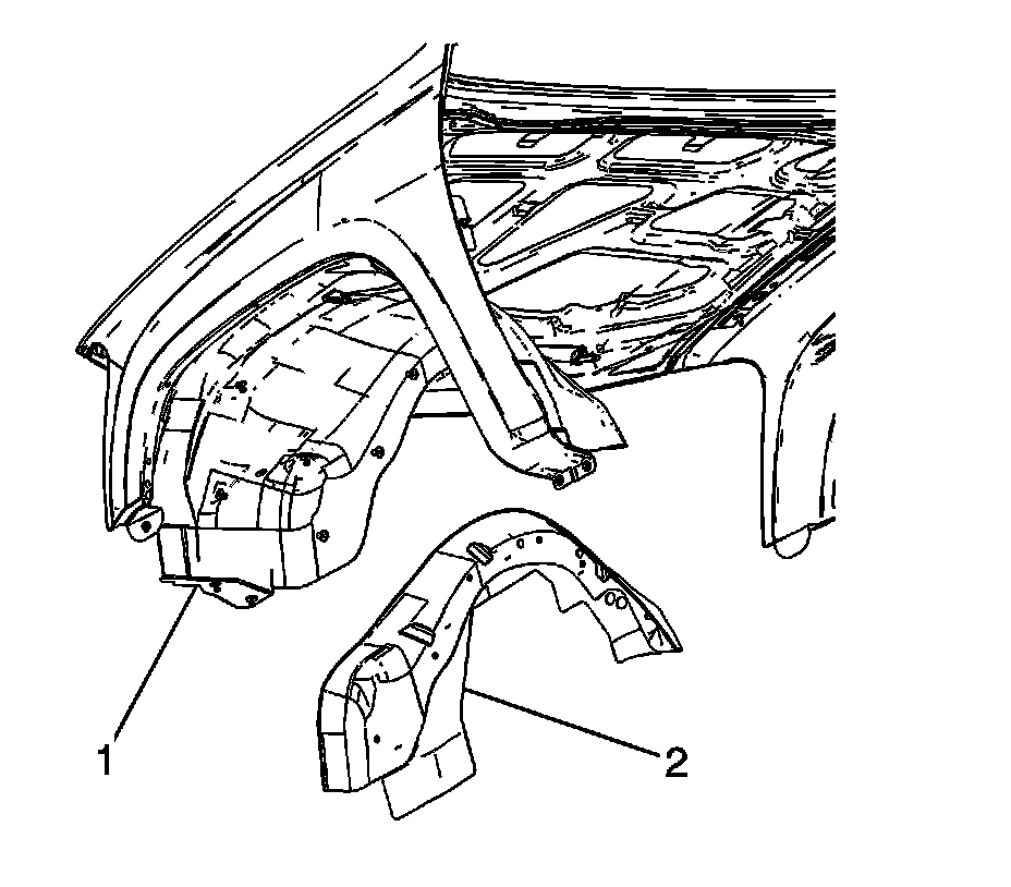 1. Install the outer wheelhouse liner (2) to the vehicle.